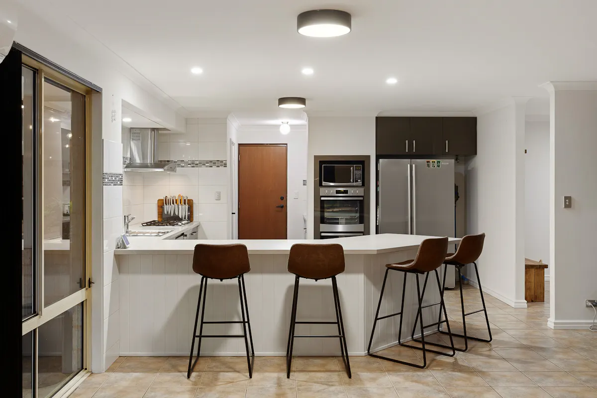 At the heart of the home, the beautifully renovated kitchen overlooks the open plan family and dining zone, creating a seamless central hub for everyday living. Complete with stainless steel appliances, gas cooktop, separate oven and griller, dishwasher, microwave recess, double fridge recess, walk-in pantry, and a dedicated "tea station," this kitchen has been designed with both functionality and style in mind.