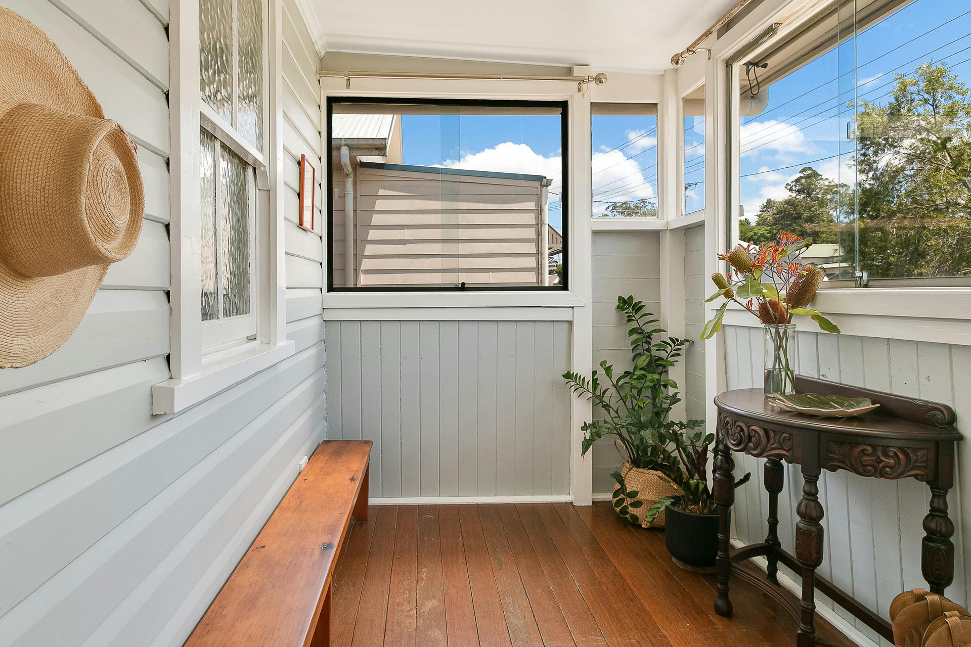 - Three bedrooms (or two plus sunroom/study), all with built-in robes and ceiling fans