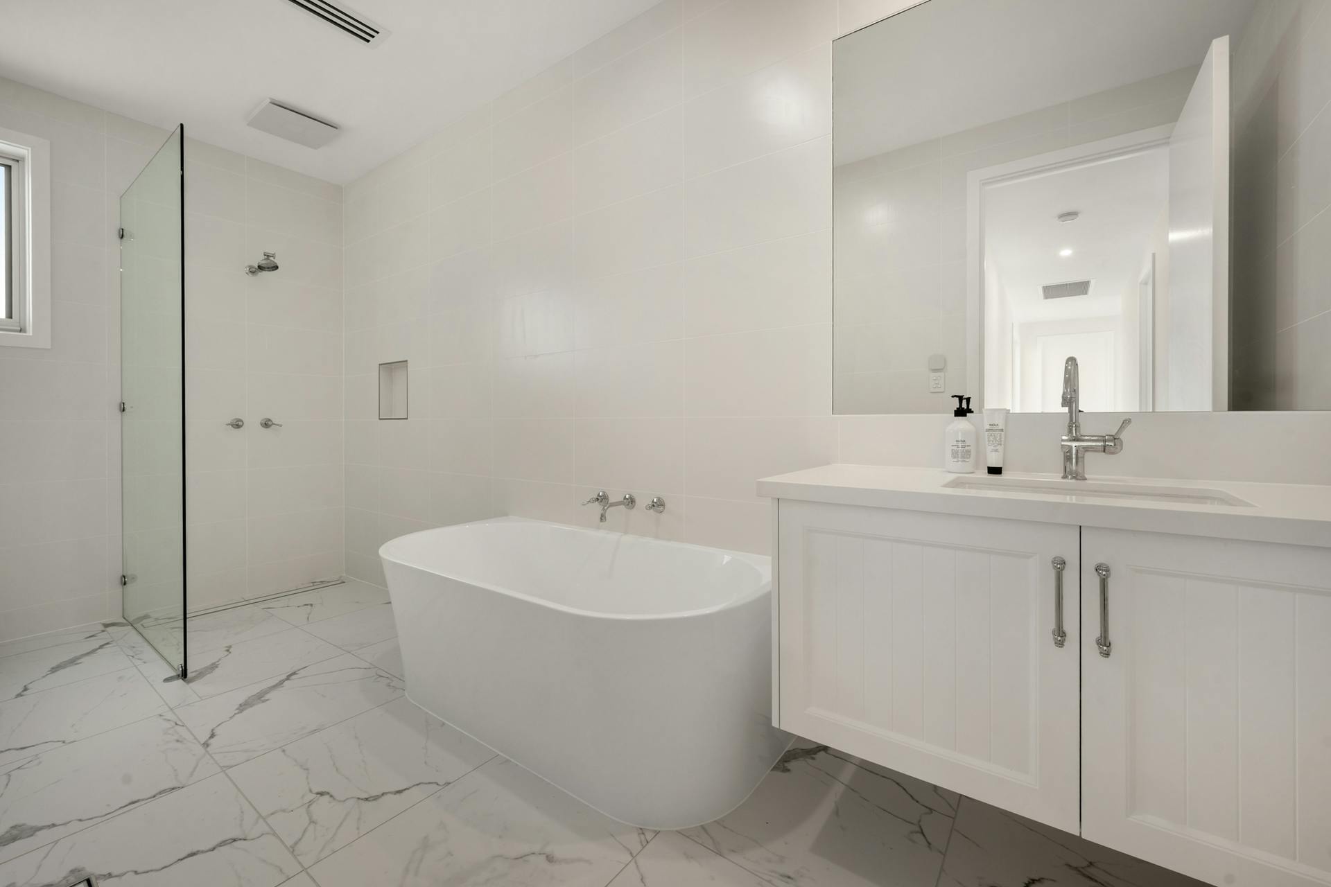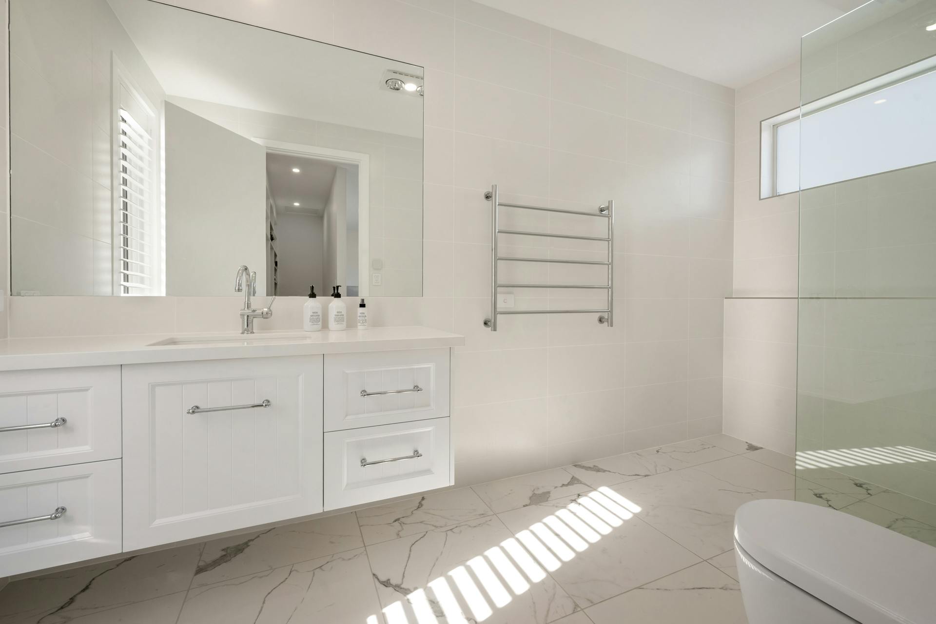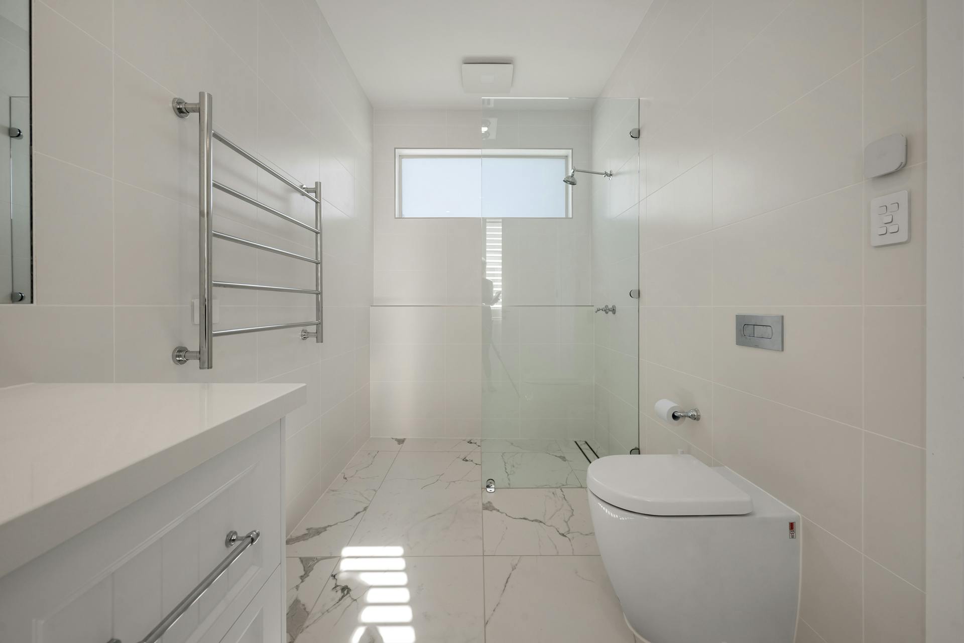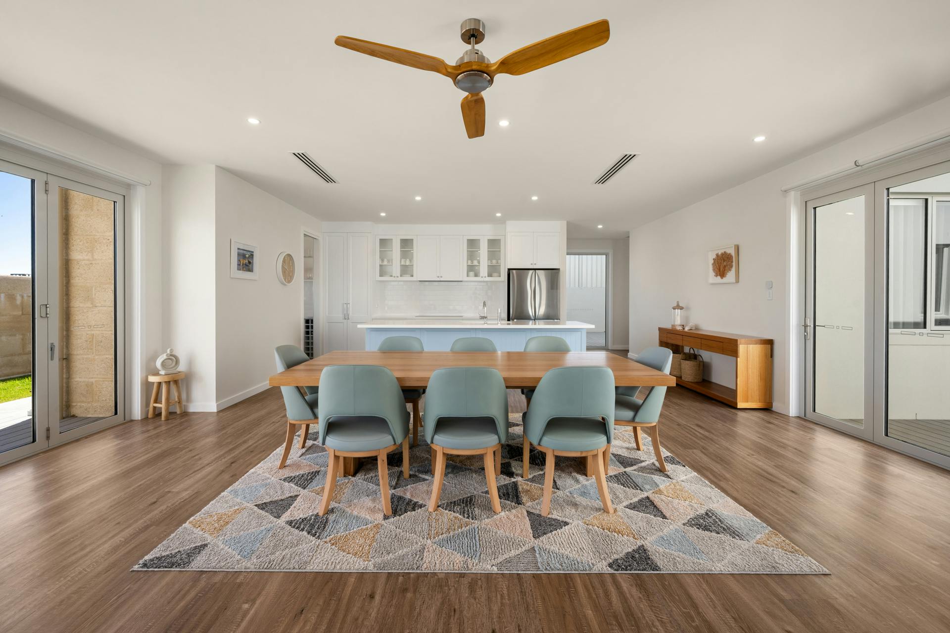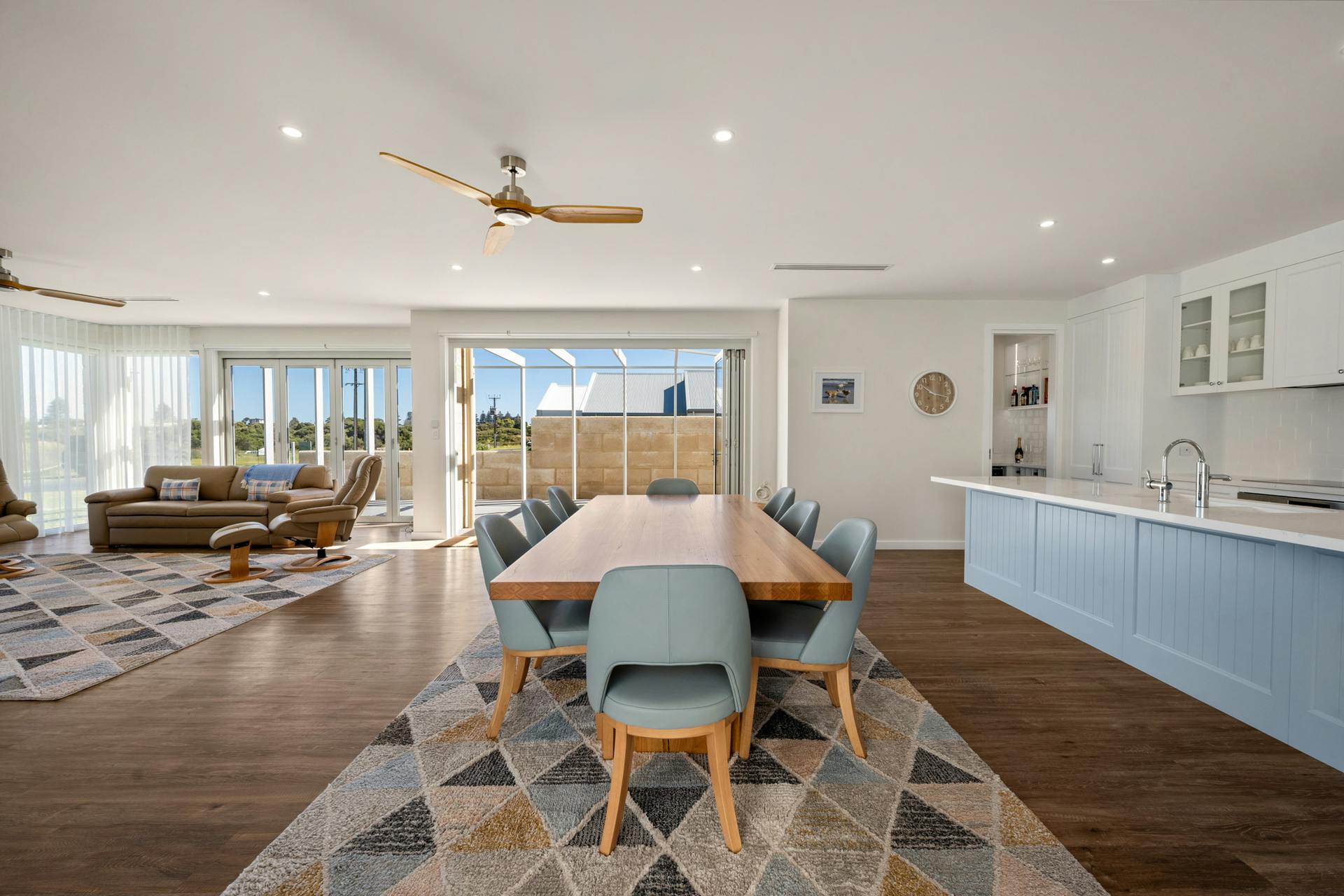 Outdoors, the fully enclosed yard features lush green lawns supported by a sprinkler system, water tank, and water softener. Designed for relaxed coastal living, the home includes two alfresco entertaining areas, a private north-facing deck with bi-fold doors, an outdoor shower, and electric blinds, creating the perfect balance of privacy, comfort, and lifestyle appeal.