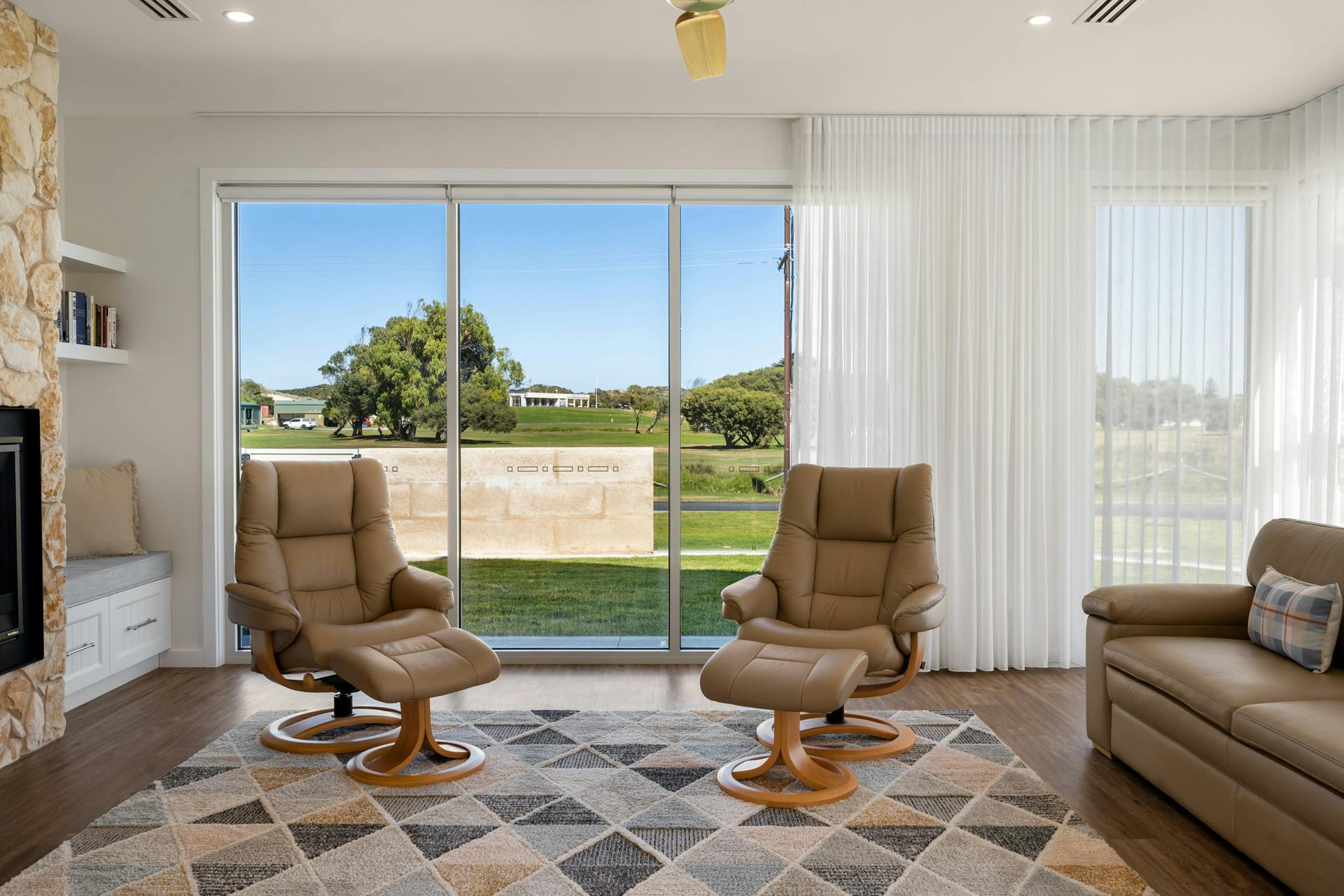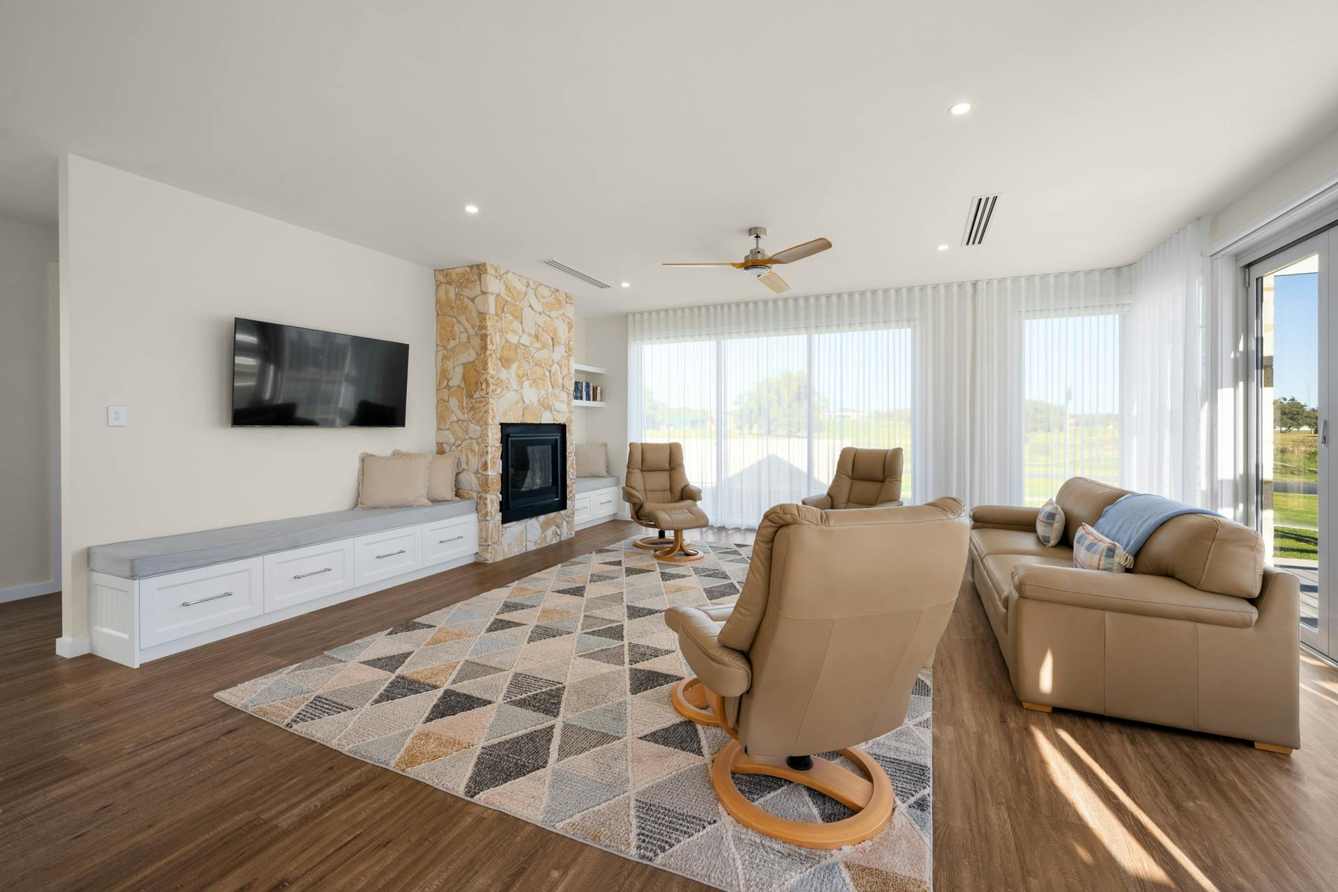 A beautifully executed, near-new home offering space, style, and premium inclusions throughout. Completed in 2023 and barely lived in, this exceptional Warren Tucker build is ready to impress, boasting sweeping golf course views, three generous bedrooms with built-in wardrobes, and modern ensuite and 1 bathroom.This home offers spacious open plan living complemented by ducted heating and cooling, a gas log heater, and ceiling fans throughout for year-round comfort. The well-appointed kitchen is supported by a butler's pantry complete with a wine fridge and wine rack, along with quality Bosch appliances including an oven and dishwasher. A double car garage provides secure parking and additional storage.