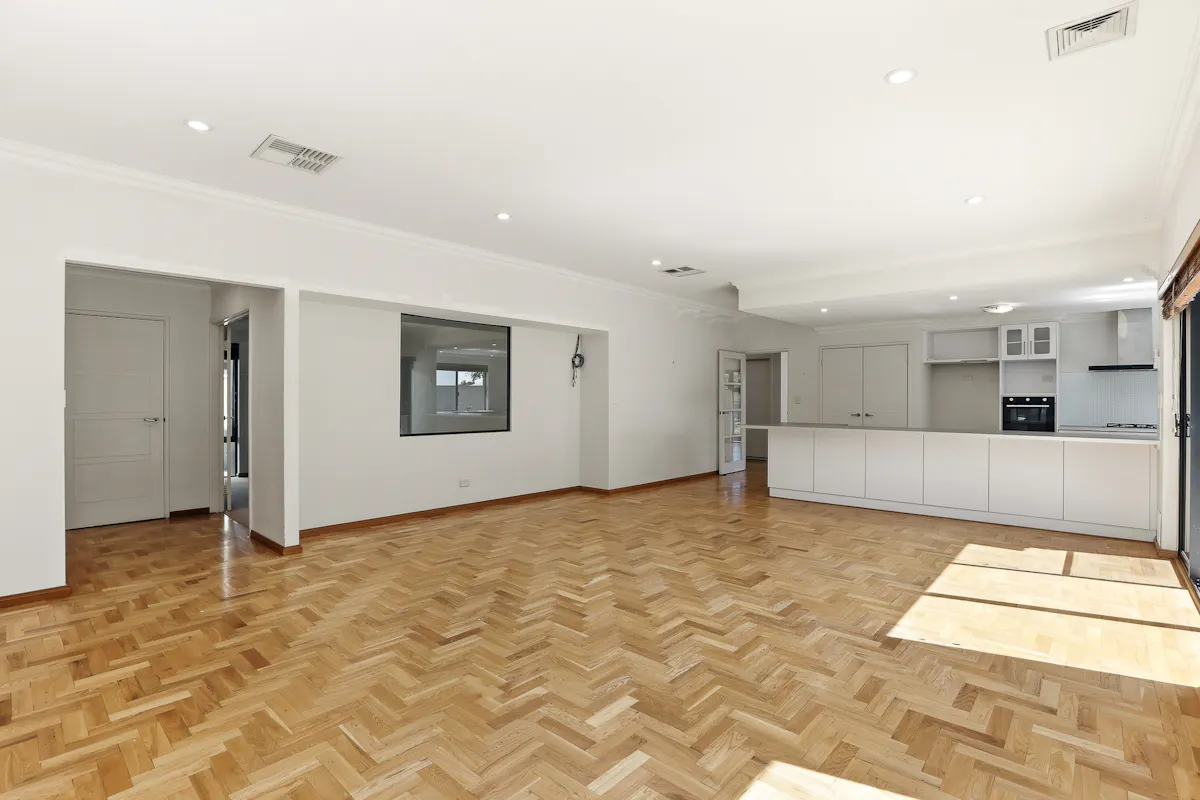 - Spacious lounge, games or activity room to the left of entry, with that same parquetry flooring, sweeping natural light and an open flow to the main living areas beyond
