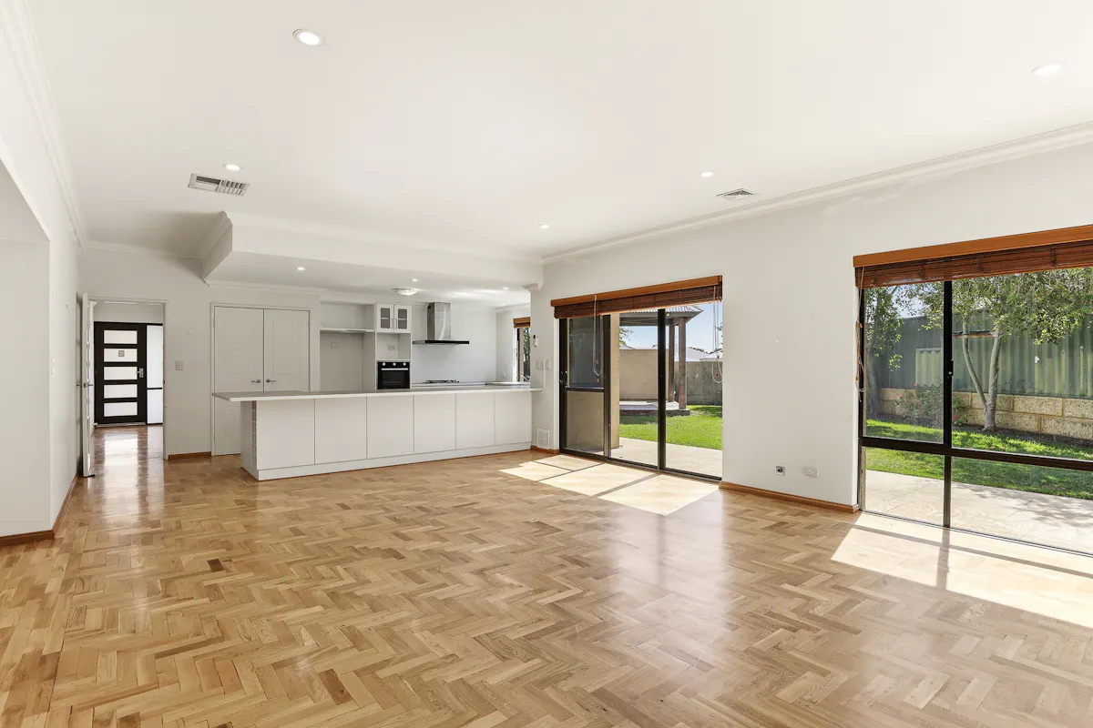 - Sweeping family zone with more than enough space for living and dining, with striking parquetry flooring, natural lighting for a bright and spacious feel, and sliding door access to the gardens