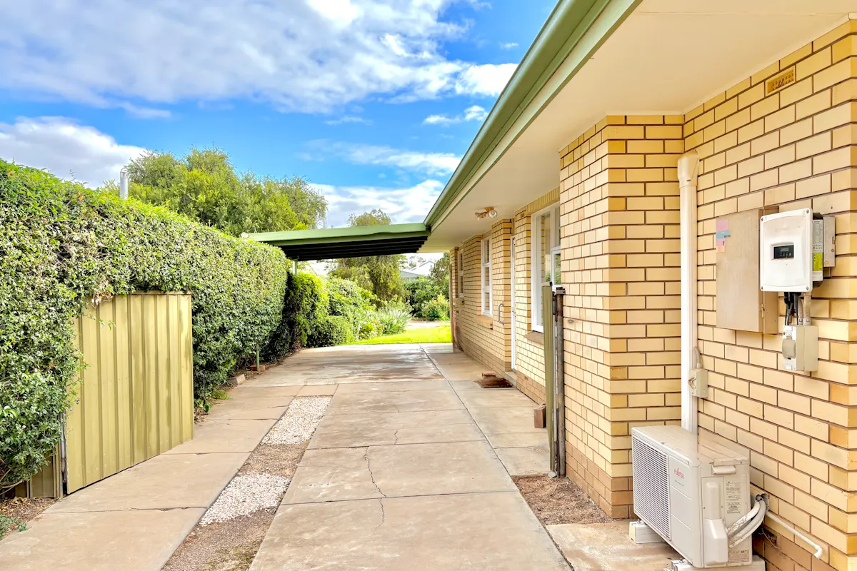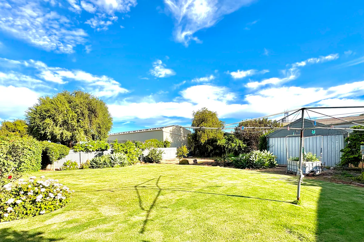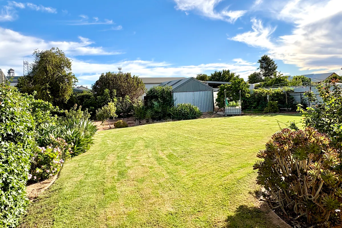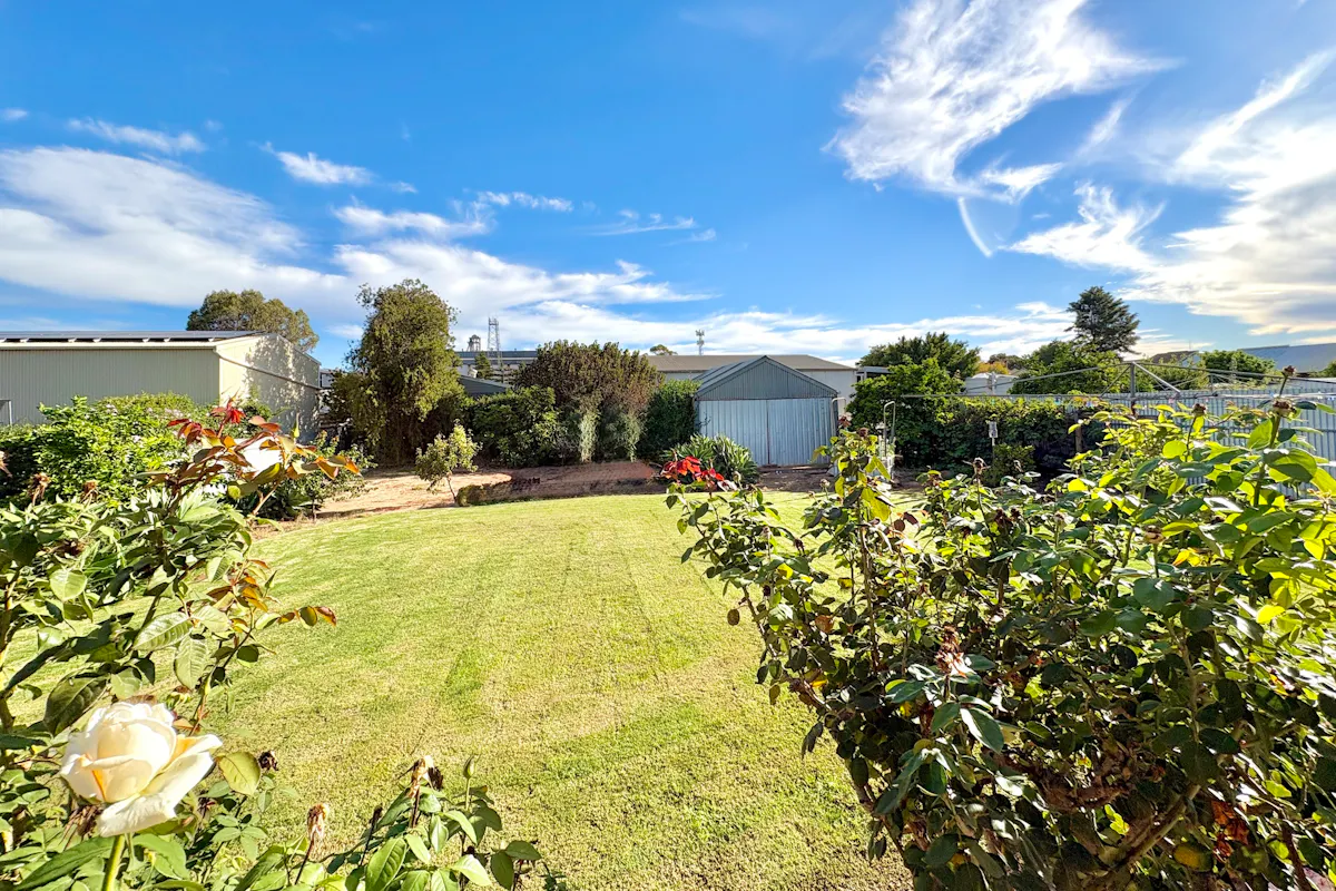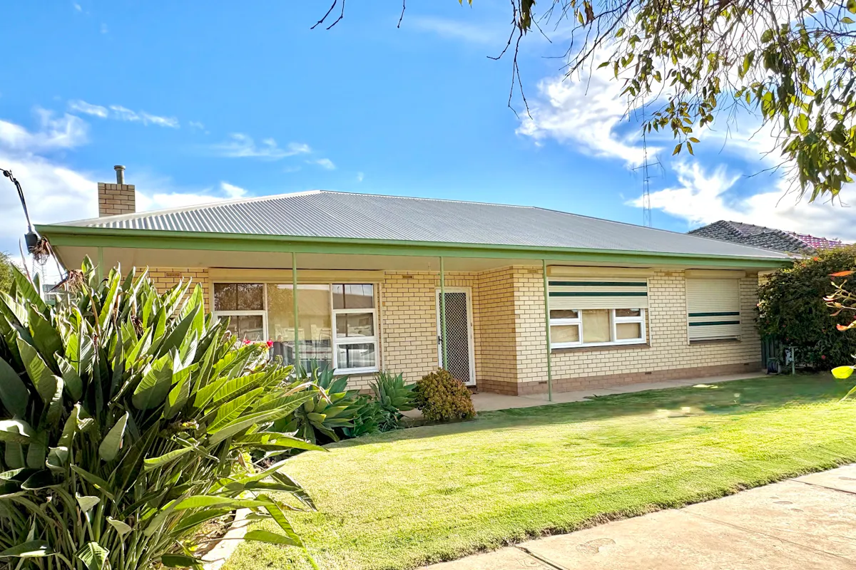 Perfectly positioned in the heart of town, this solid brick veneer home offers an unbeatable lifestyle of convenience. Located directly opposite the sporting complex and Community Club, and just metres from the Area School, you'll also find the IGA, bakery, hall, hotel, post office, swimming pool, and park all within easy walking distance. It's truly a location that delivers on every level.Set on a well-established allotment, the home is surrounded by lush gardens both front and back. Thanks to recent rains, the lawns are vibrant and green, complemented by an array of thriving fruit trees, roses, and flowering plants. A long concrete driveway leads to a single carport, while a semi-enclosed pergola with brick paved flooring, shade cloth roofing, and lattice detailing provides a light-filled outdoor entertaining space.