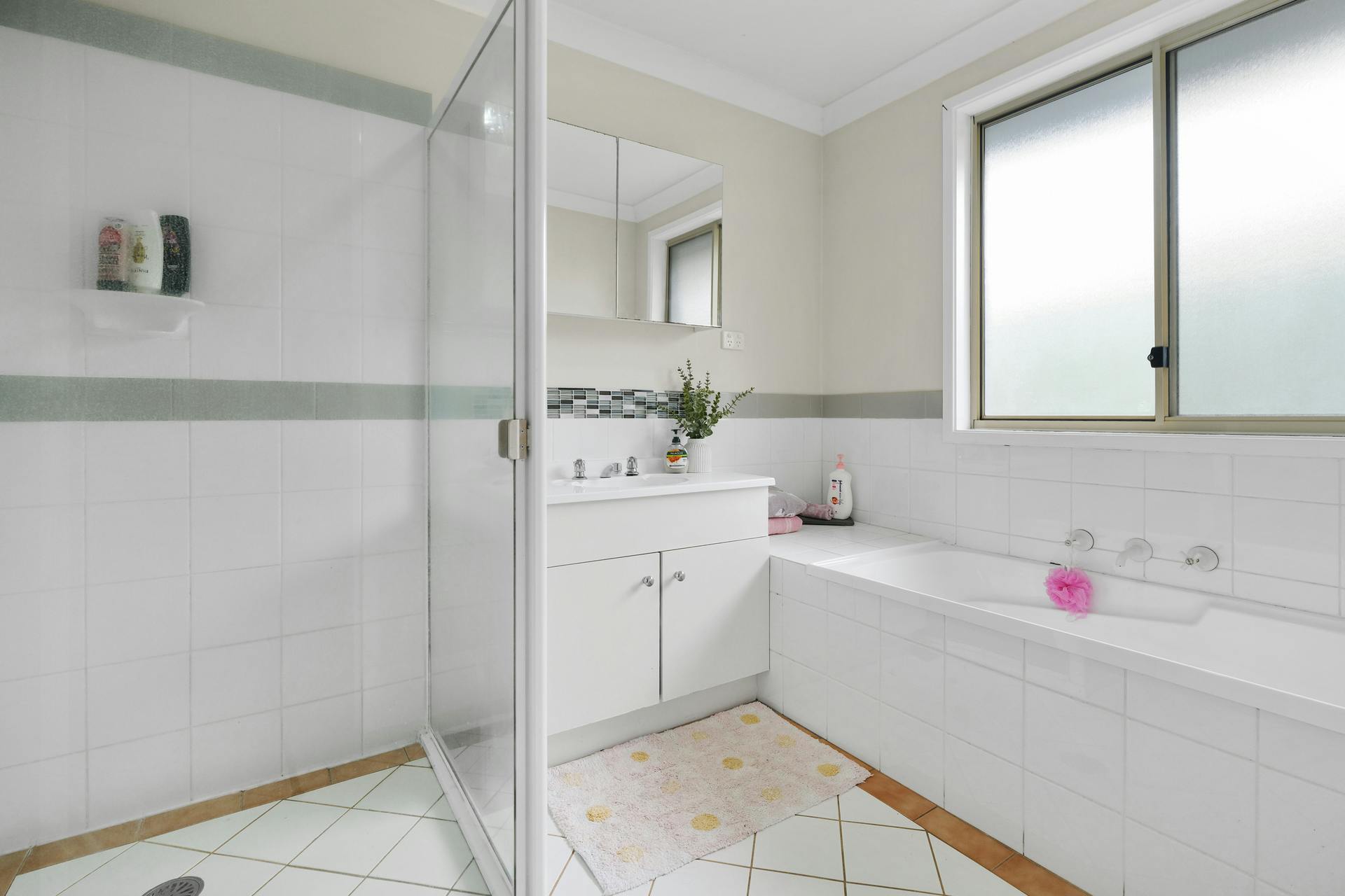 - Family bathroom with separate shower and bathtub