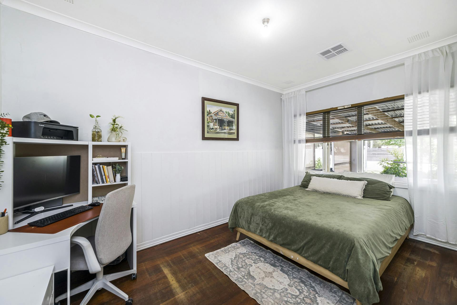 Bedrooms host air con and built-in robes.