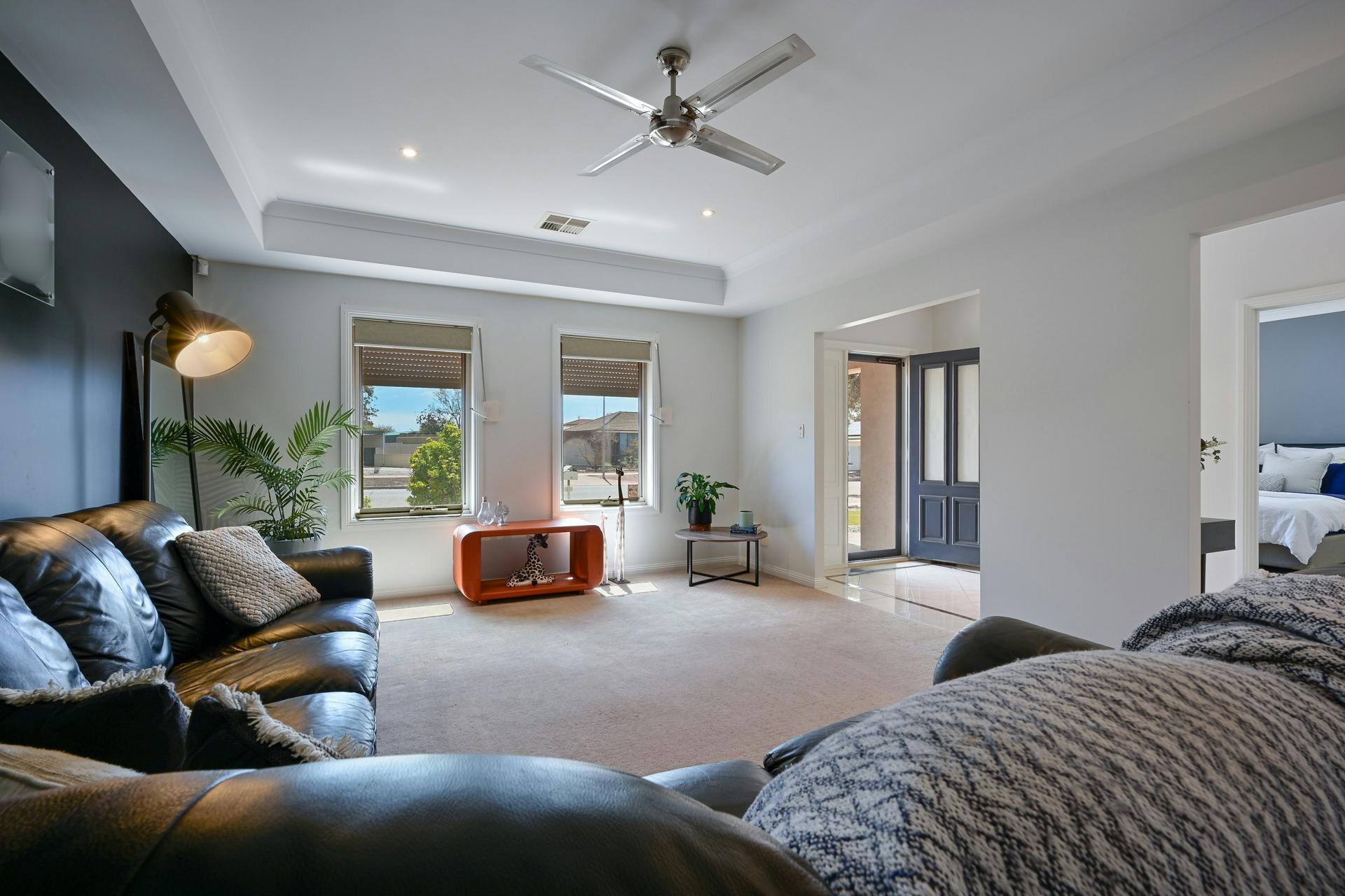 Formal lounge with ceiling fan