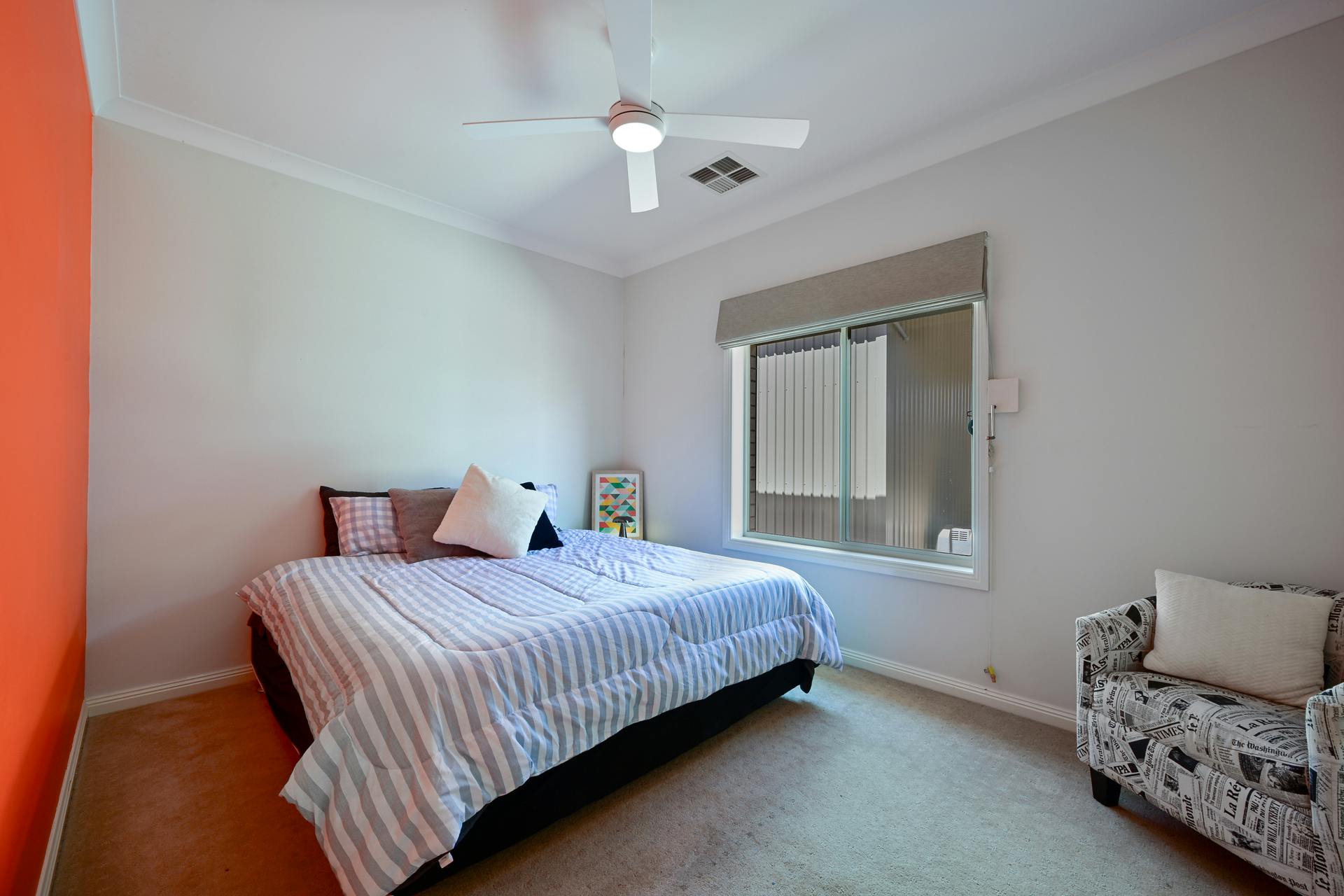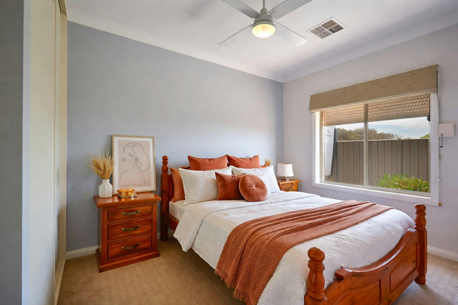 Five generously sized, carpeted bedrooms with ceiling fans, two with built-in robes