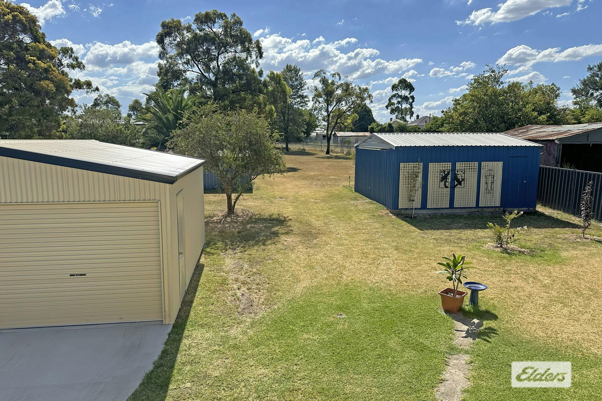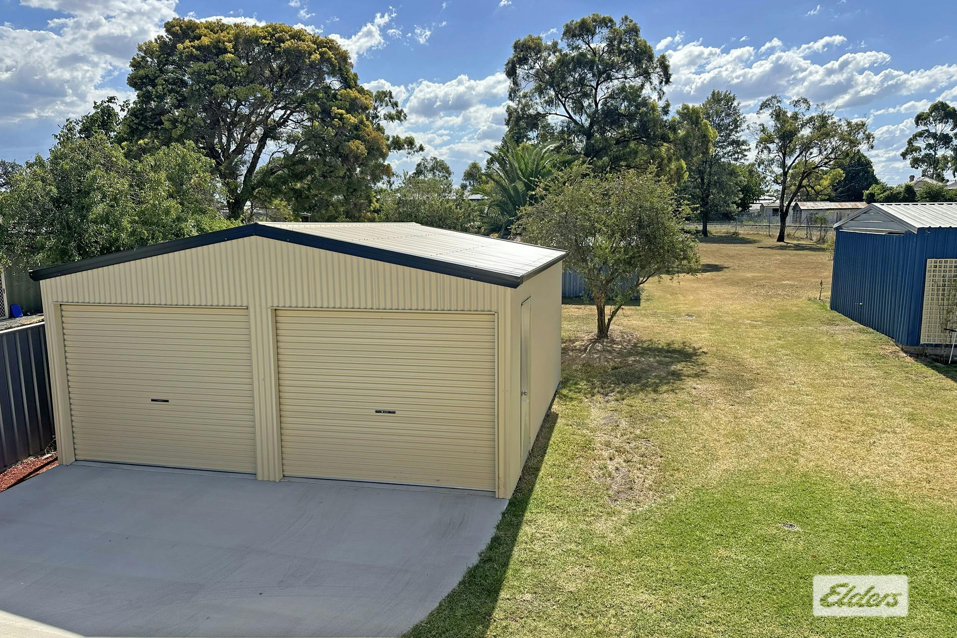 A new concrete driveway leads into the backyard with 2 x double garages and 3 garden sheds.