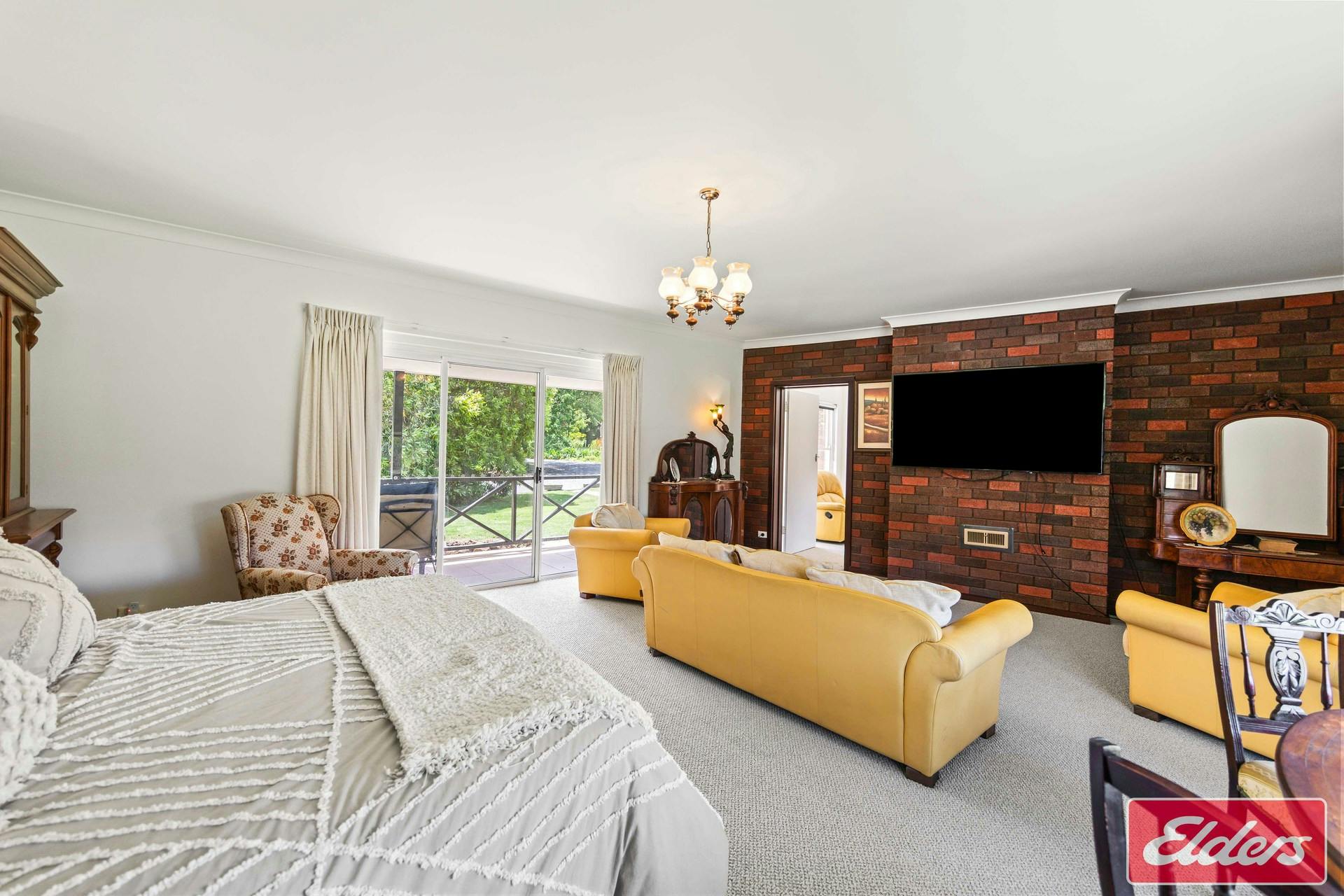 There is a large master suite and two other bedrooms with built ins, a formal lounge with combustion heater, a dining room, a modern kitchen, a sunroom/study, updated bathroom and laundry and a big feature being the enclosed rear verandah overlooking the expansive lawns and large dam.