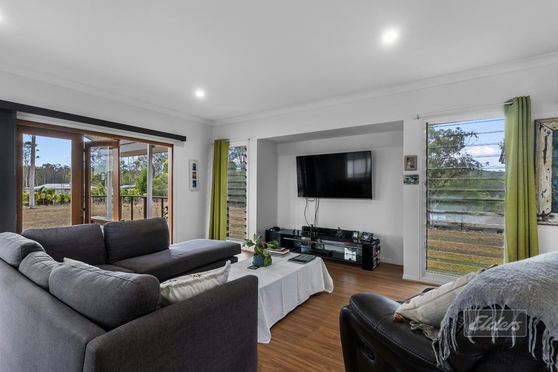 Designed with sustainability in mind, the home is supported by two 5,000-gallon water tanks and a Taylex septic system. The land has been thoughtfully cleared, with open usable space complemented by retained trees at the rear, creating natural privacy and a haven for local wildlife including kangaroos and wallabies.