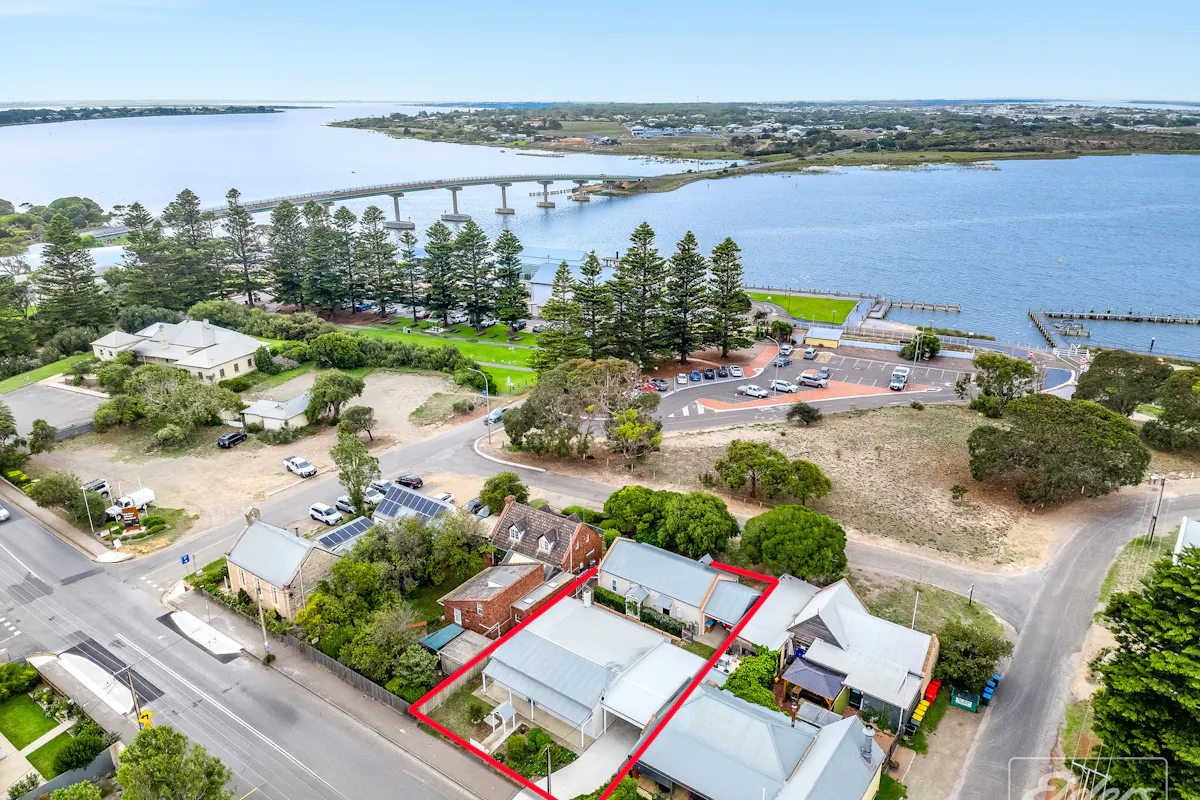 A rare and truly unique opportunity to secure two charming cottages on one 557m² title with dual street frontage and river views over the wharf from the rear home. Positioned only a stone's throw from Goolwa's Main Street and shopping centre, this tightly held location offers exceptional lifestyle appeal and strong investment potential.Offering superb flexibility from both an investment and holiday perspective allowing you to rent one or both or use one as a holiday home for yourself and enjoy the rental income from the other.