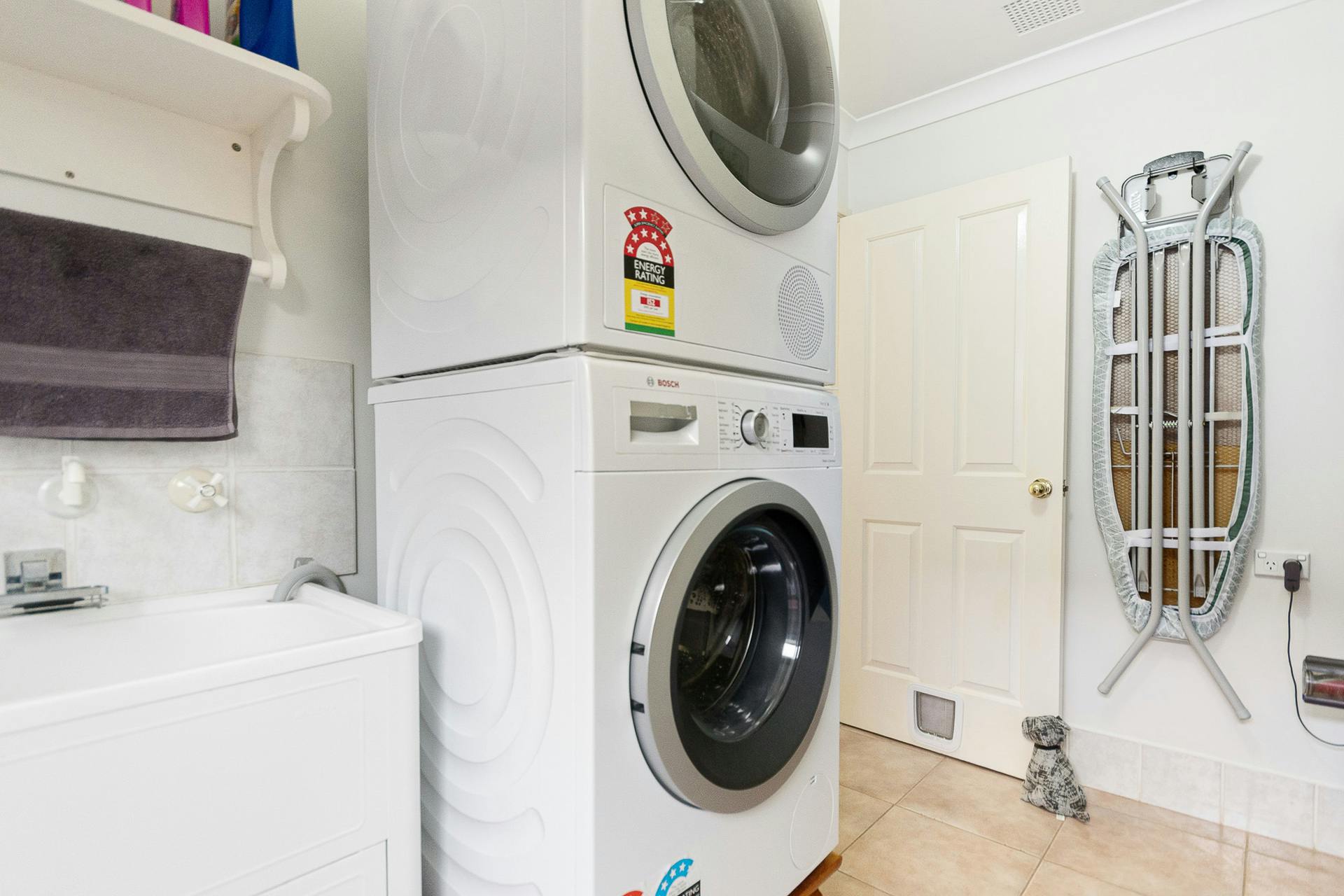 - Sweeping open plan living and dining area, with tiled flooring, an oversized and cooling ceiling fan, and an efficient reverse cycle air conditioning unit, with sliding doors directly to the patio for an entertainers dream design