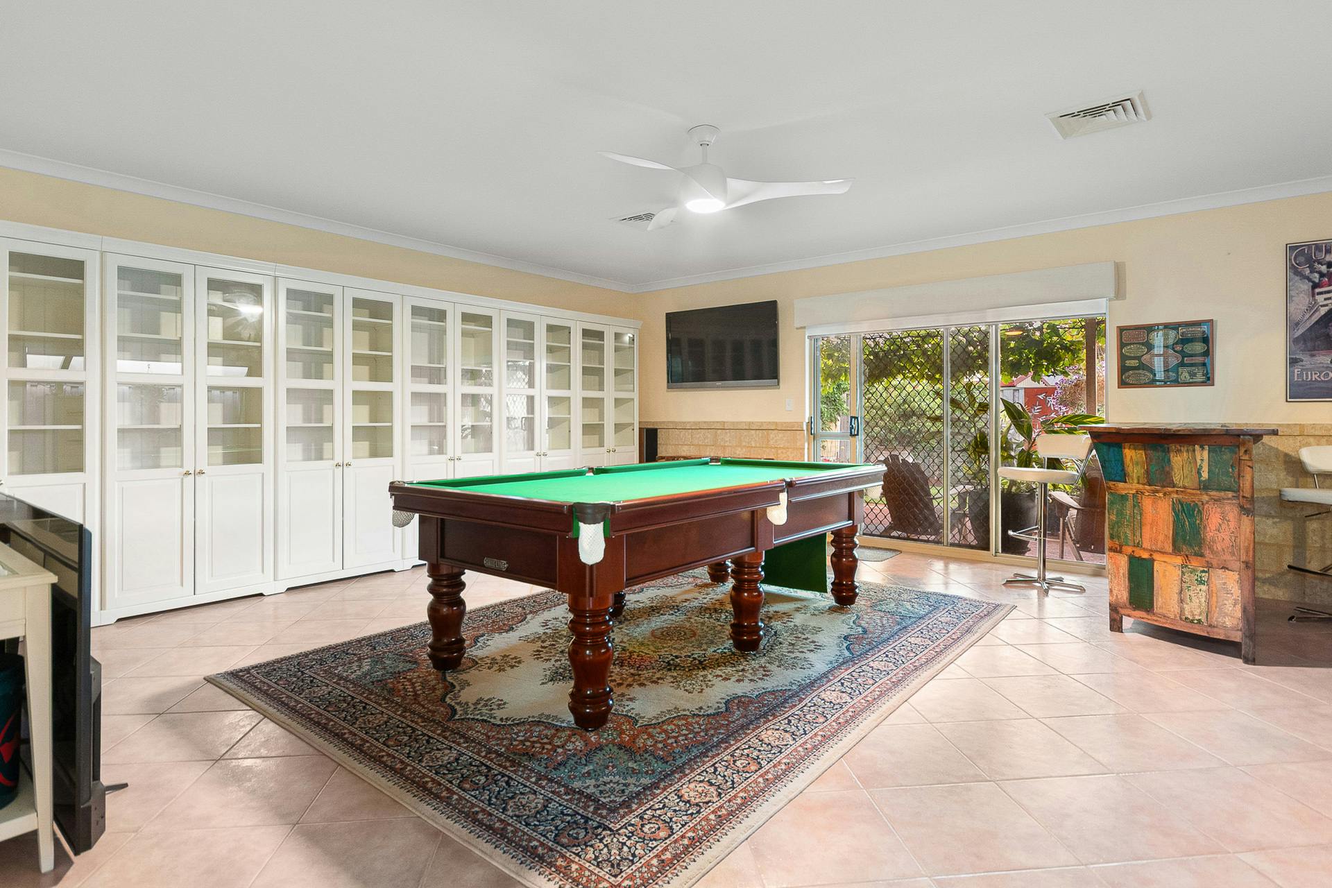 - Substantial games room to the rear of the residence, with tiled flooring, another ceiling fan and French door entry, with sliding door access to the gardens for a seamless flow throughout