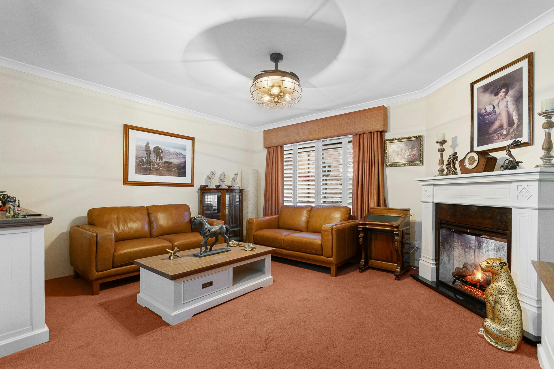 - Formal lounge with sumptuous styling within, including plush carpet, a feature fireplace and plantation shutters to the windows