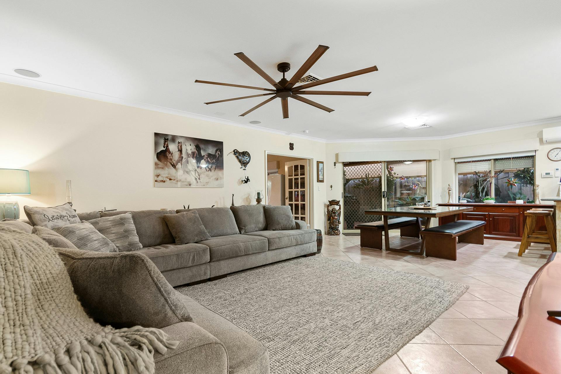 Surrounded by quality homes and located just a few steps from a range of impressive parkland, including the much loved Lake Richmond, this perfectly placed family home occupies a spacious 647sqm* block and offers premium living throughout. Manicured to both the front and back, the gardens ensure a welcoming setting to relax, with a sheltered and secluded alfresco for entertaining friends, and lush green lawn for appeal, while established and landscaped plantings provide a sense of serenity within. Moving to the interior, you have a huge 272sqm* floorplan to enjoy, with a multitude of living options that provide both formal and informal surrounds, including a large games area, an open plan family hub with central kitchen and both a separate lounge and dedicated dining area. The four bedrooms are all incredibly well-spaced for comfort, with both the ensuite and main bathroom fully equipped for family functionality, while your double garage awaits to the front for secure vehicle parking.Positioned within a sought after and much-loved setting, the extensive choice of parkland, water features and reserve space ensure an idyllic location to call home, with a fenced dog park nearby, a variety of walking pathways and plentiful wildlife to discover. The impressive Rockingham Foreshore is just a little further with its endless entertainment, dining and retail opportunity, while the pristine coastline ensures a true lifestyle location, with crystal clear waters, boating facilities and the white sandy beaches all easily on hand. And for the daily essentials, you are walking distance to a choice of schooling options, ensuring a family orientated appeal, with shopping facilities close at hand and both road and public transport connections throughout.
