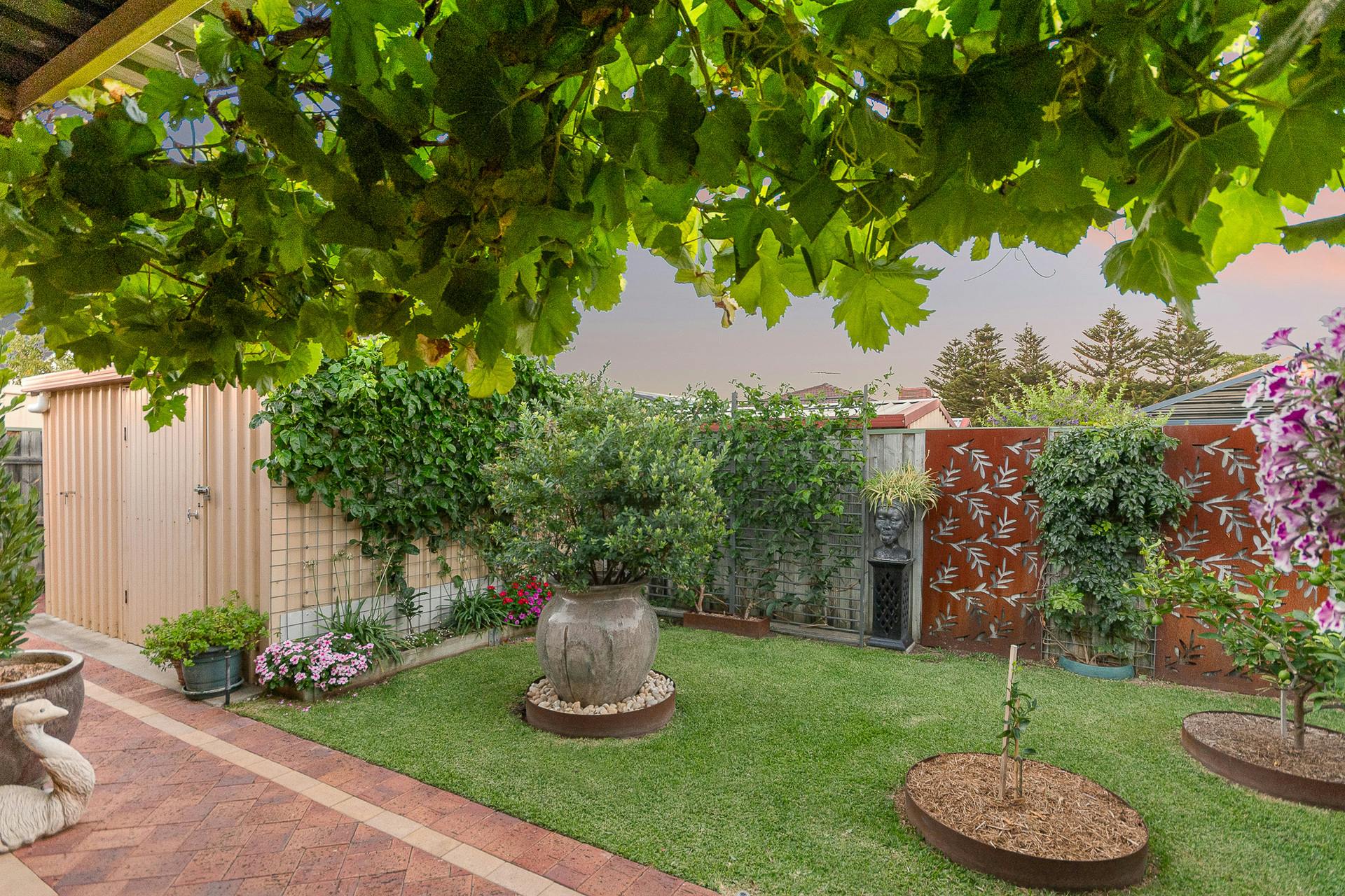 - Lush green lawn to the backyard, with beds to the fenceline, a variety of planted trees and vines, and a handy garden shed for storage