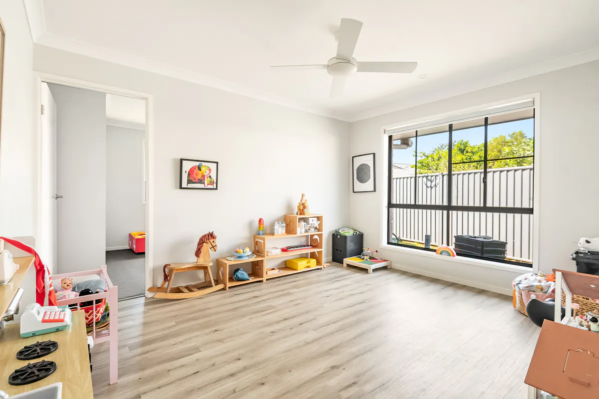 Outdoors, the fully fenced, flat backyard is bathed in sunshine and provides a safe and generous space for the whole family to enjoy.