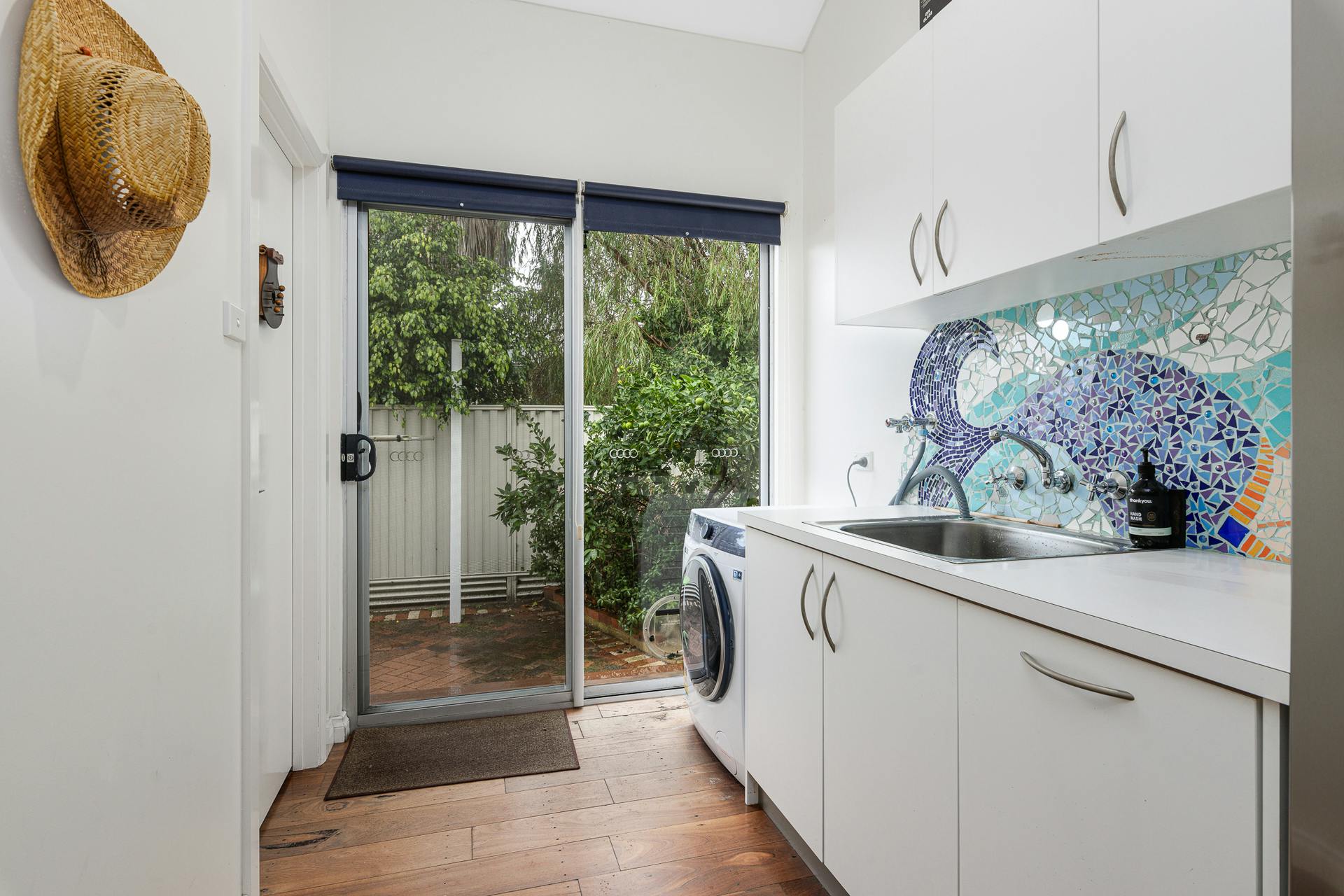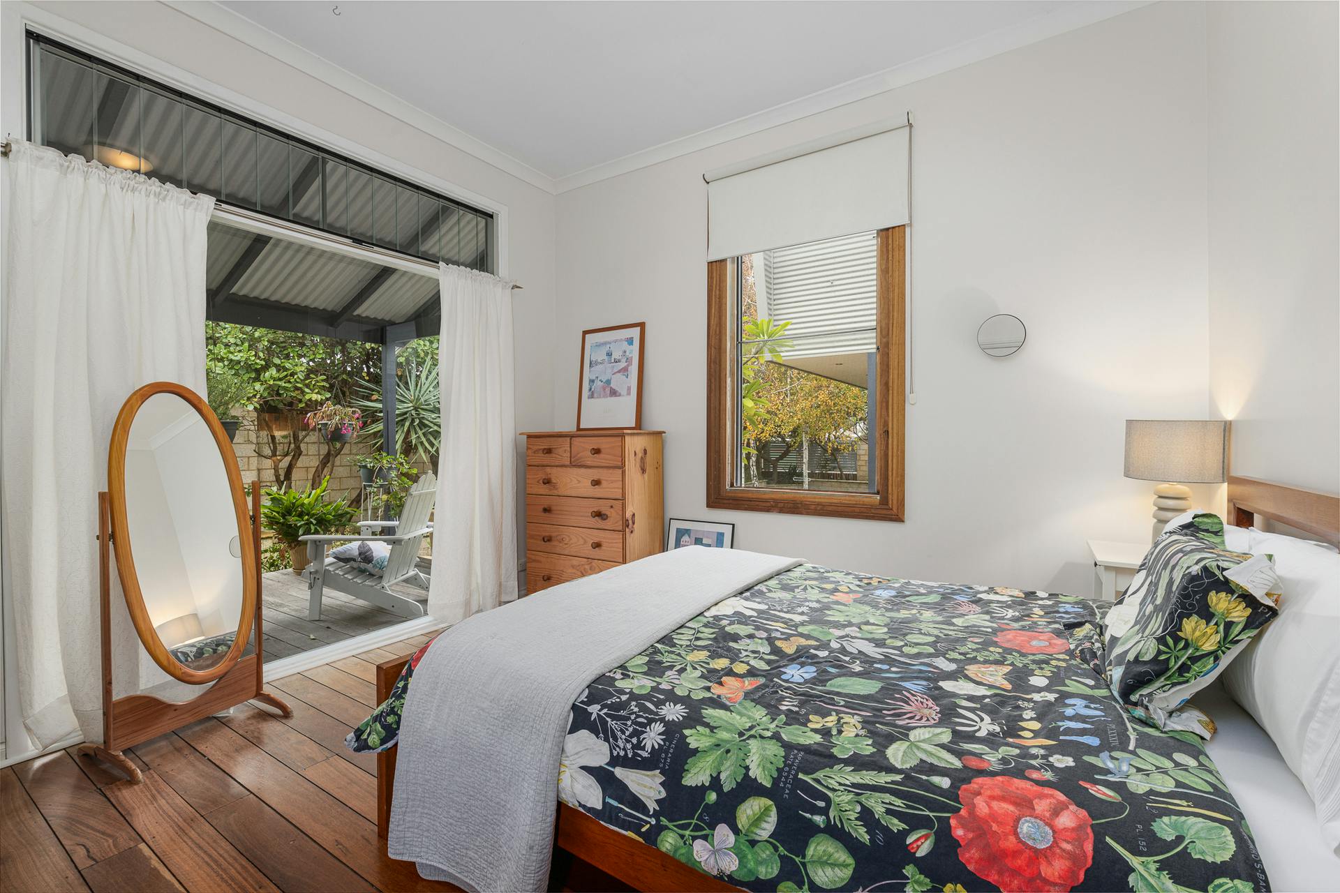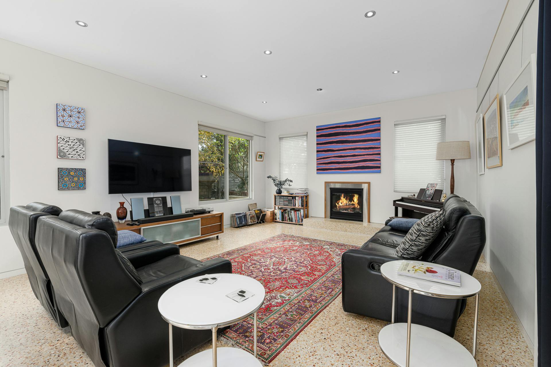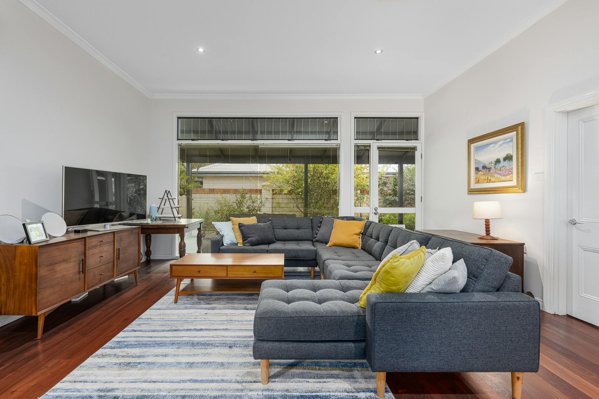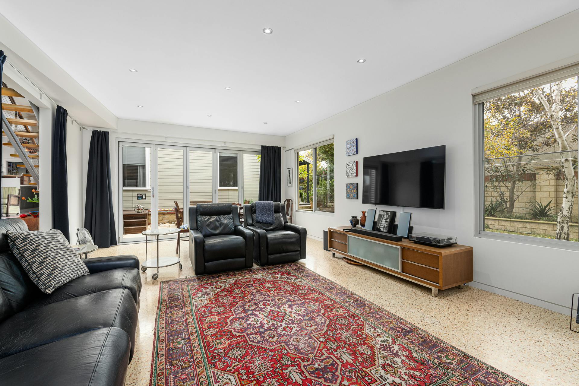 Beyond the bold red front door, the home unfolds with warmth, light, and an effortless sense of space. Jarrah and blackbutt flooring, polished aggregate and quality fixtures and fittings combine to create a refined yet welcoming atmosphere. Stylish, custom-made windows and doors allow remarkable solar access – flooding the interiors with natural light, enhancing timber accents, sleek lines and masterful design elements.