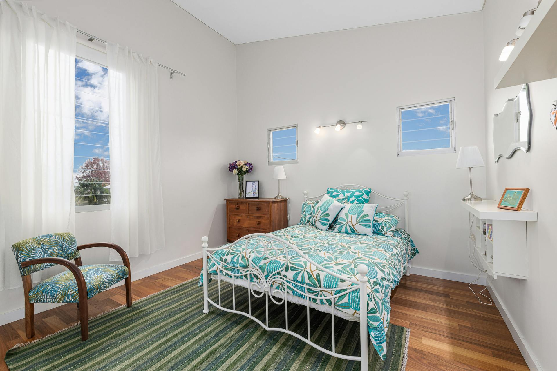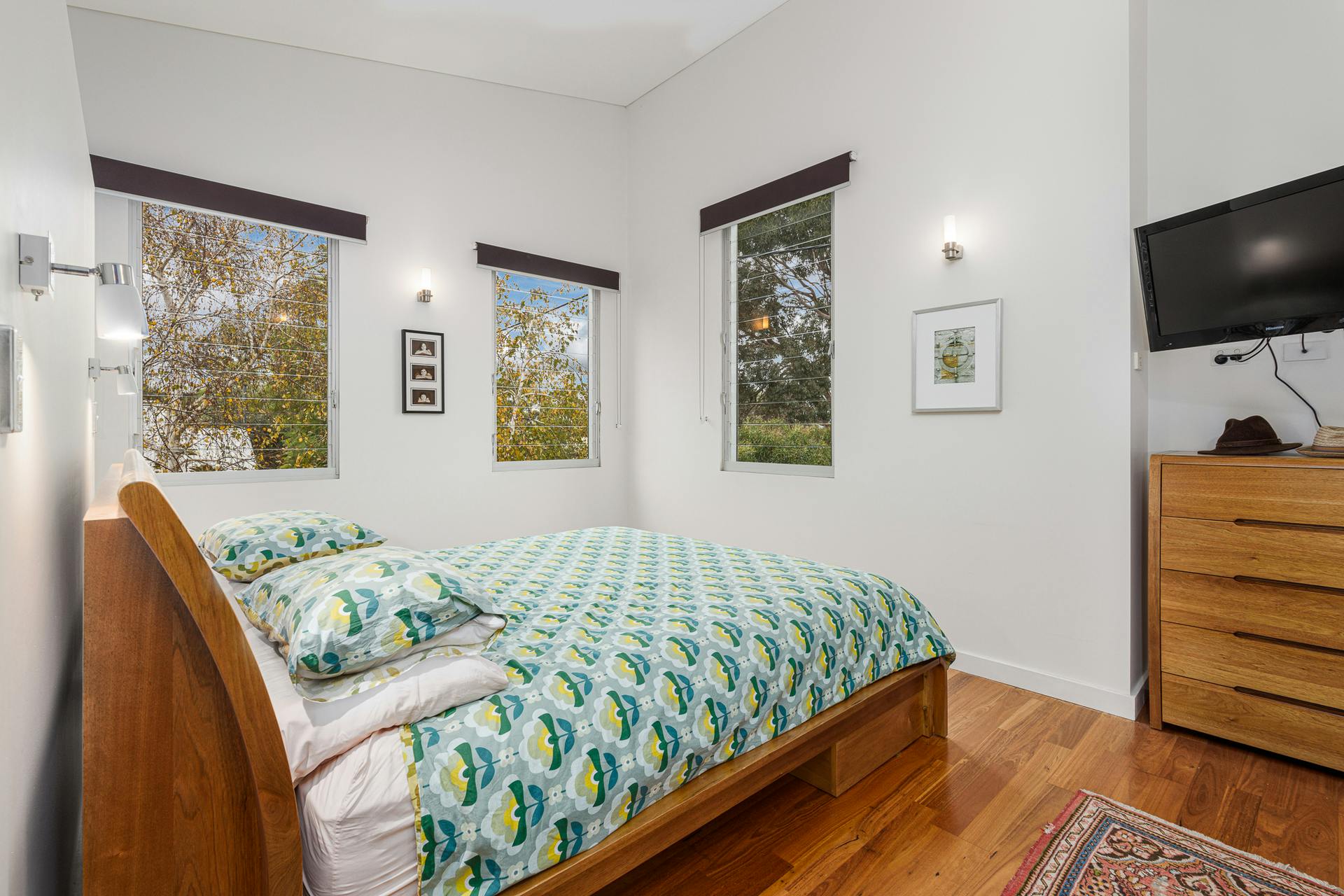 Bedrooms are all generously sized, four to the upper floor with soaring ceilings, built-in-robes and abundant storage. The master suite enjoys a private balcony among the tree-tops and a serene ensuite retreat plus walk through robe. Bathrooms are bright, light, and beautifully maintained.