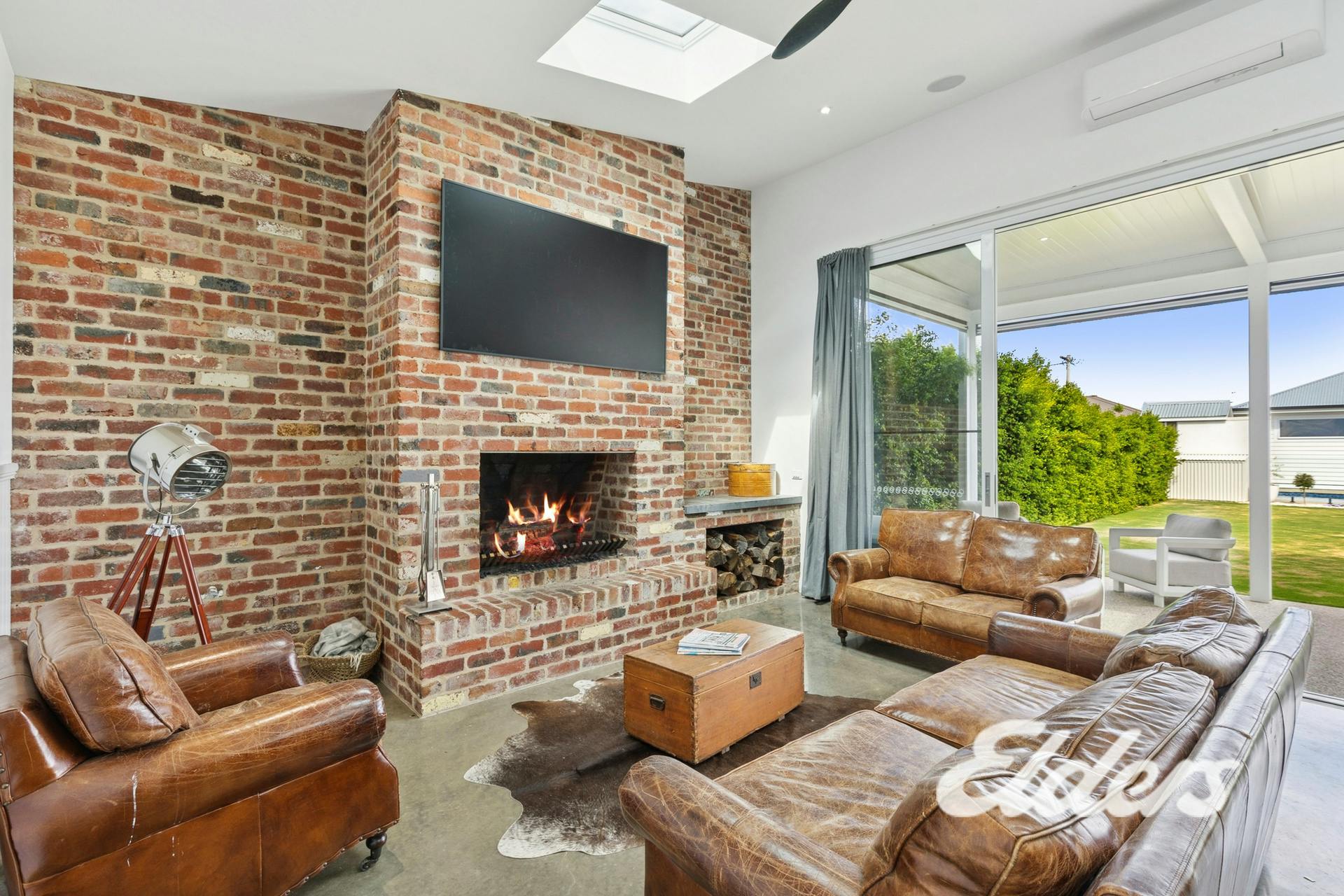 A true standout is the exceptional alfresco entertaining pavilion. Complete with a full kitchen, wine fridge and a striking recycled red brick open fireplace, this space has been designed for entertaining in every season with an outdoor built in Bbq. The automated zip blinds and grand double-glazed doors allow the area to seamlessly extend the living zone year-round.