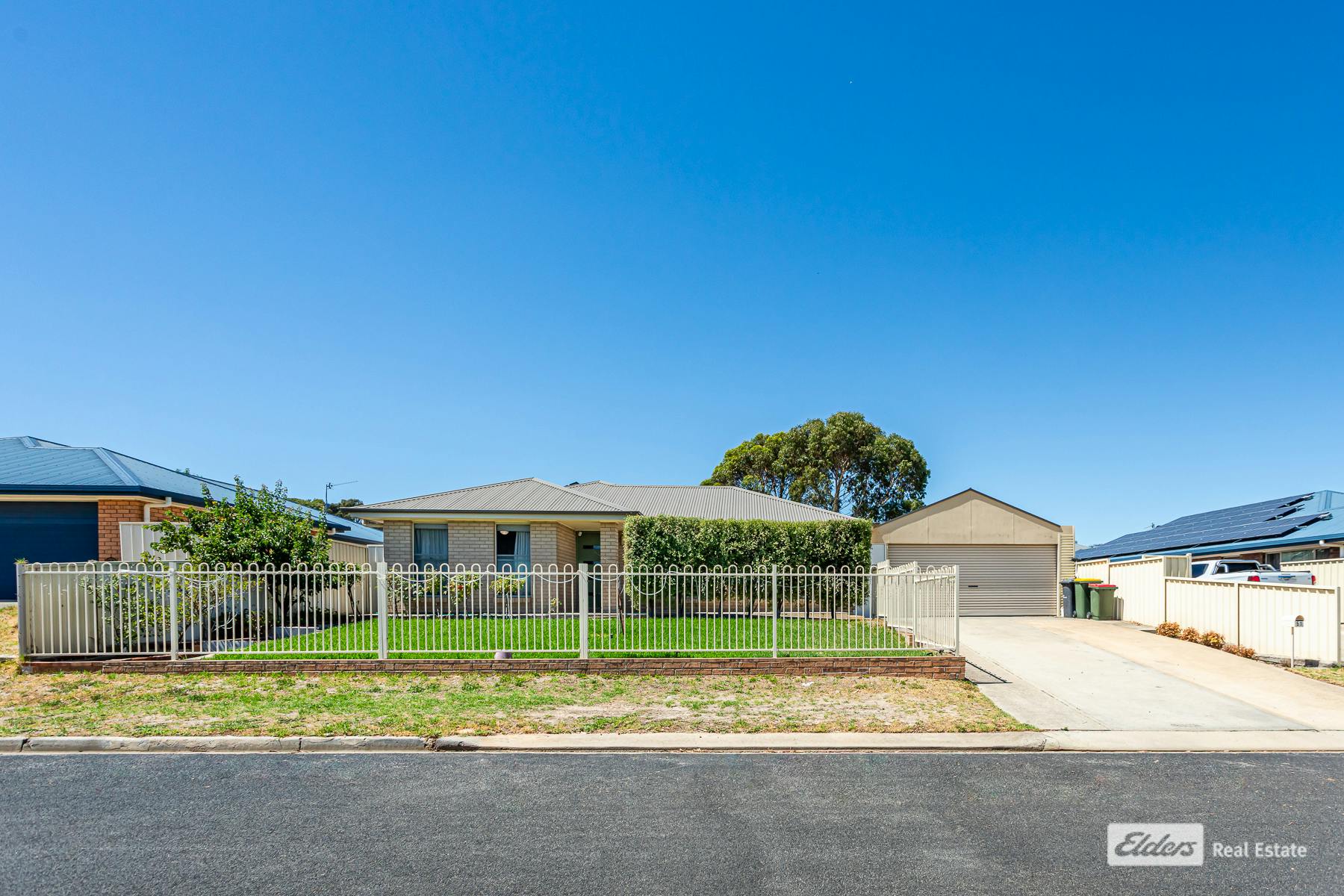 The central three-way bathroom is thoughtfully designed with separate vanity, toilet, shower, and bath for added convenience. A practical laundry with direct outdoor access, double carport, and garden shed further enhance the functionality of the home. The secure yard provides plenty of space for children and pets to play safely, while rainwater connection and solar add valuable efficiency benefits.