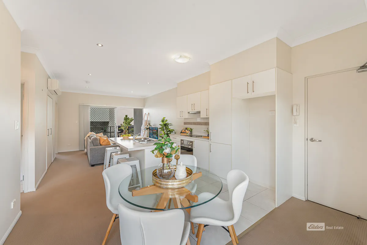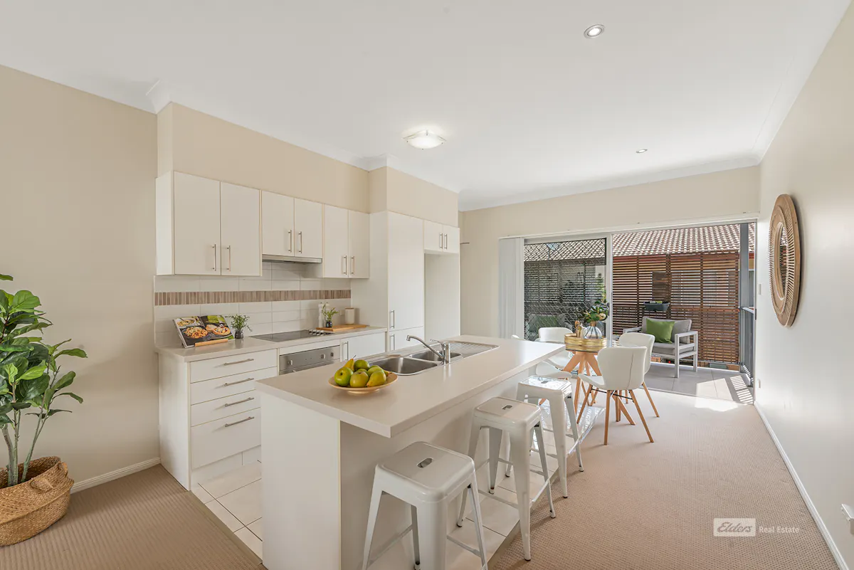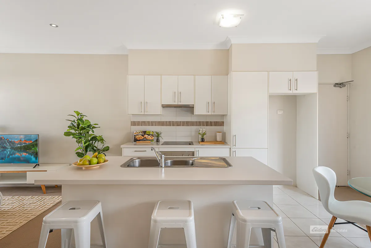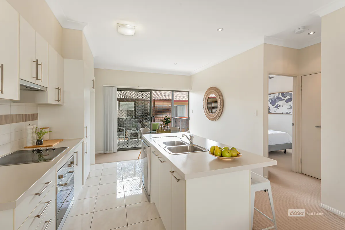 ...talk to Di about living walking distance to the party that is Everton Parklane Dining Precinct, yet in a peaceful elevated location. This stylish apartment offers high ceilings and a deck at either end of the open plan living areas, allowing gentle light and fresh breezes throughout. Whatever the time of day or year you have outdoor access to the best of our beautiful climate.The kitchen is a delight of cool modern colour palette with plenty of storage and bench space and a built in dishwasher. The large island bench/breakfast bar makes entertaining a dream.