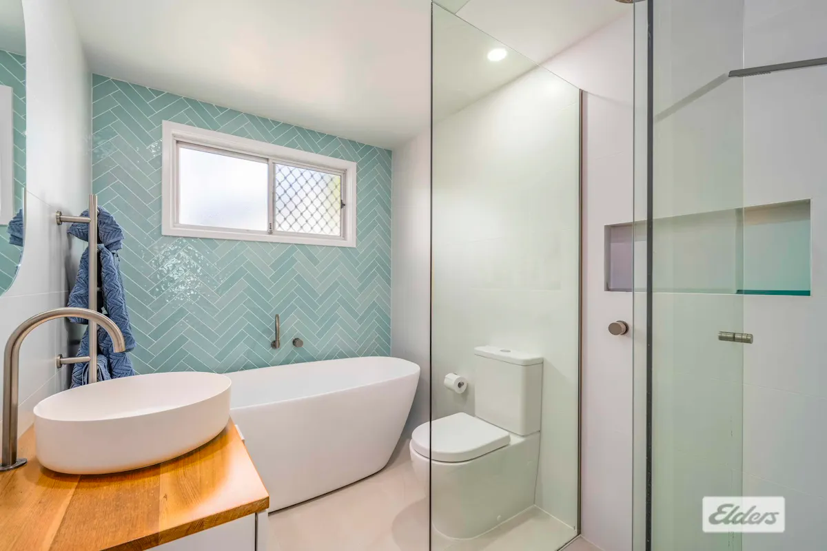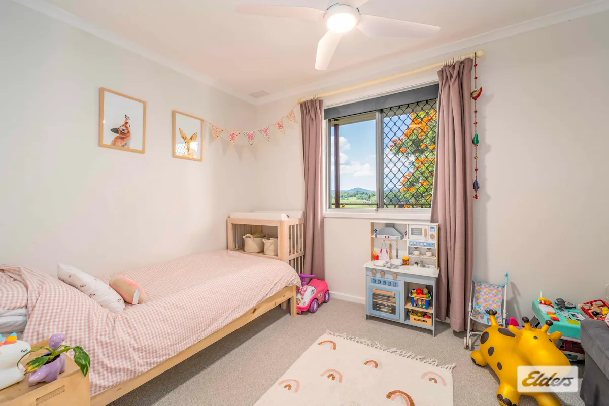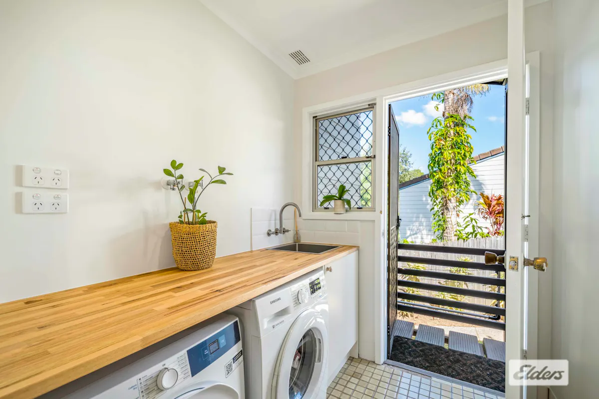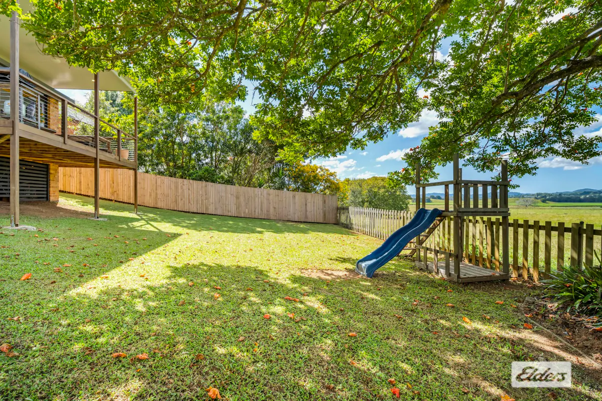 Three beautifully renovated, spacious bedrooms with rural views. Built-in robes and deck access off the master. A modern bathroom, tastefully finished with herringbone tiled feature-wall. A generously sized modern kitchen with American white oak timber bench tops, ample cabinetry and equipped with European appliances - SMEG oven and ceramic cooktop and Bosch extractor fan and dishwasher. The dining room catches cool breezes flowing through the home. The spacious, bright lounge room opens onto the covered porch and large outdoor patio area, surrounded by tropical gardens and lawns with fully fenced front and back yards.