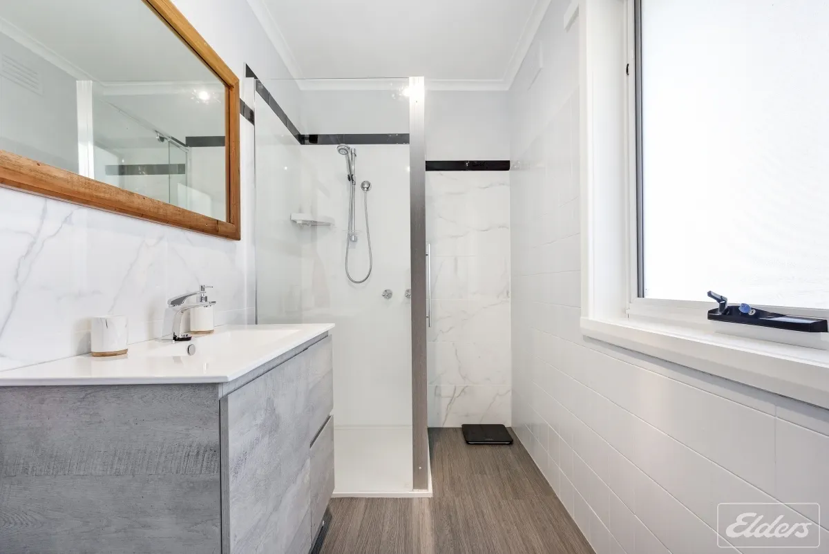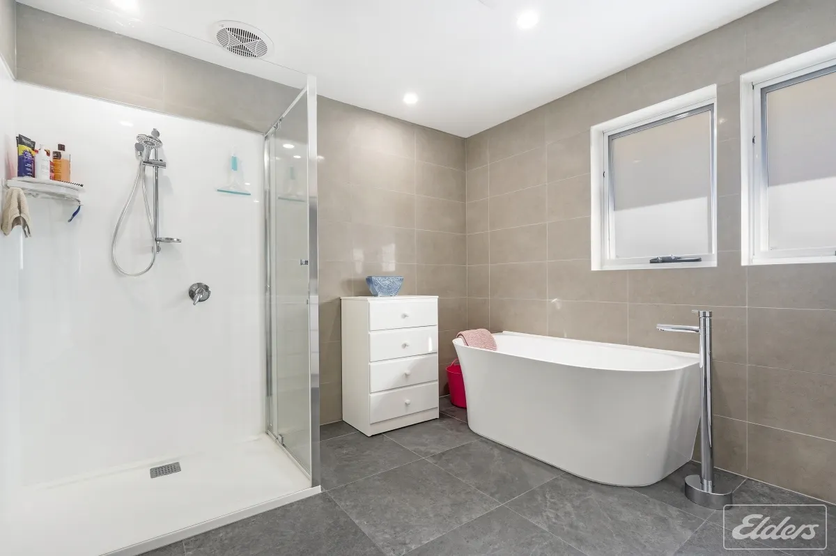 From the lounge you can walk into the extra-large rumpus room with ensuite. Being 14m x 4.5m this room is perfect for teenagers, entertaining, relaxing, a gym, or all of the above. The rumpus looks out onto the backyard which is fully fenced and safe for young children. This offers a flat area to enjoy and a fenced-off vegetable garden with raspberries and passionfruit. The large side yard is separately fenced and big enough for a game of cricket or similar activity. At the back of the house, you will find a double lock up garage and off-street parking for 4 vehicles. Further back, at the rear of the block is a double story barn with mezzanine floor, room for 2 more cars plus a workshop.