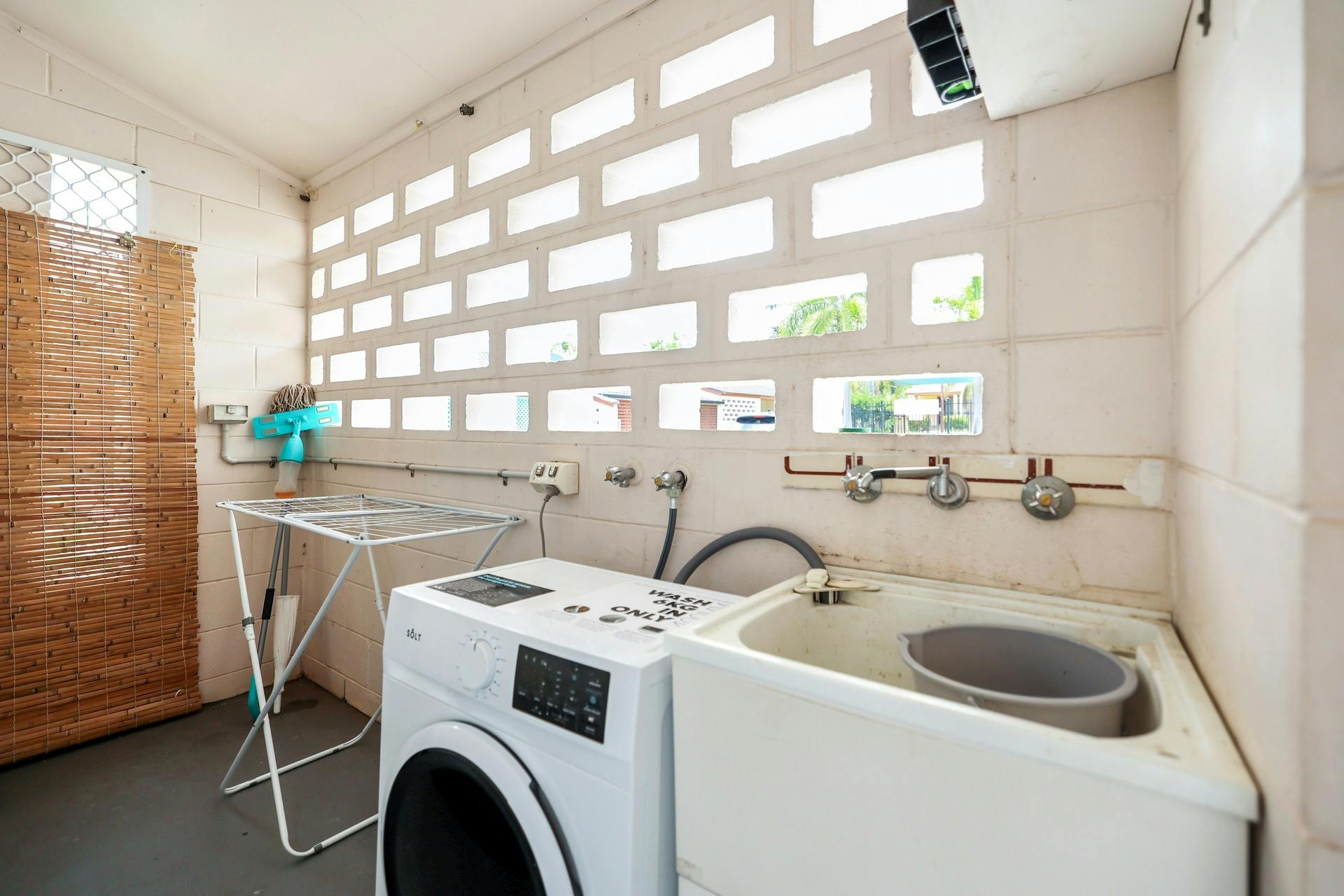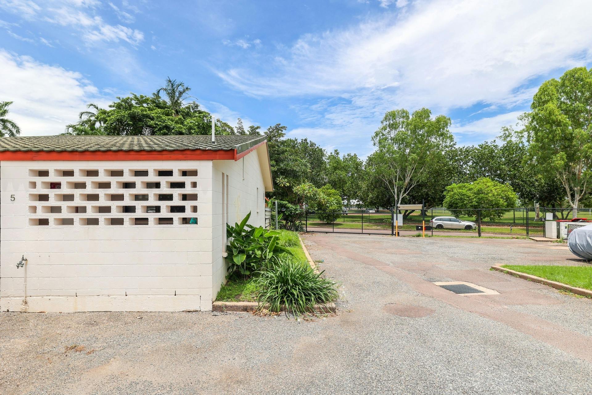Down the hallway, you'll find two good-sized bedrooms, both positioned at the rear of the property and offering sliding door access to the courtyard. Each bedroom includes built-in robes with a feature sliding door showcasing a Territory-inspired design. The courtyard itself is cosy and private, framed by established perimeter gardens and complete with a side gate providing easy access to the front of the complex.