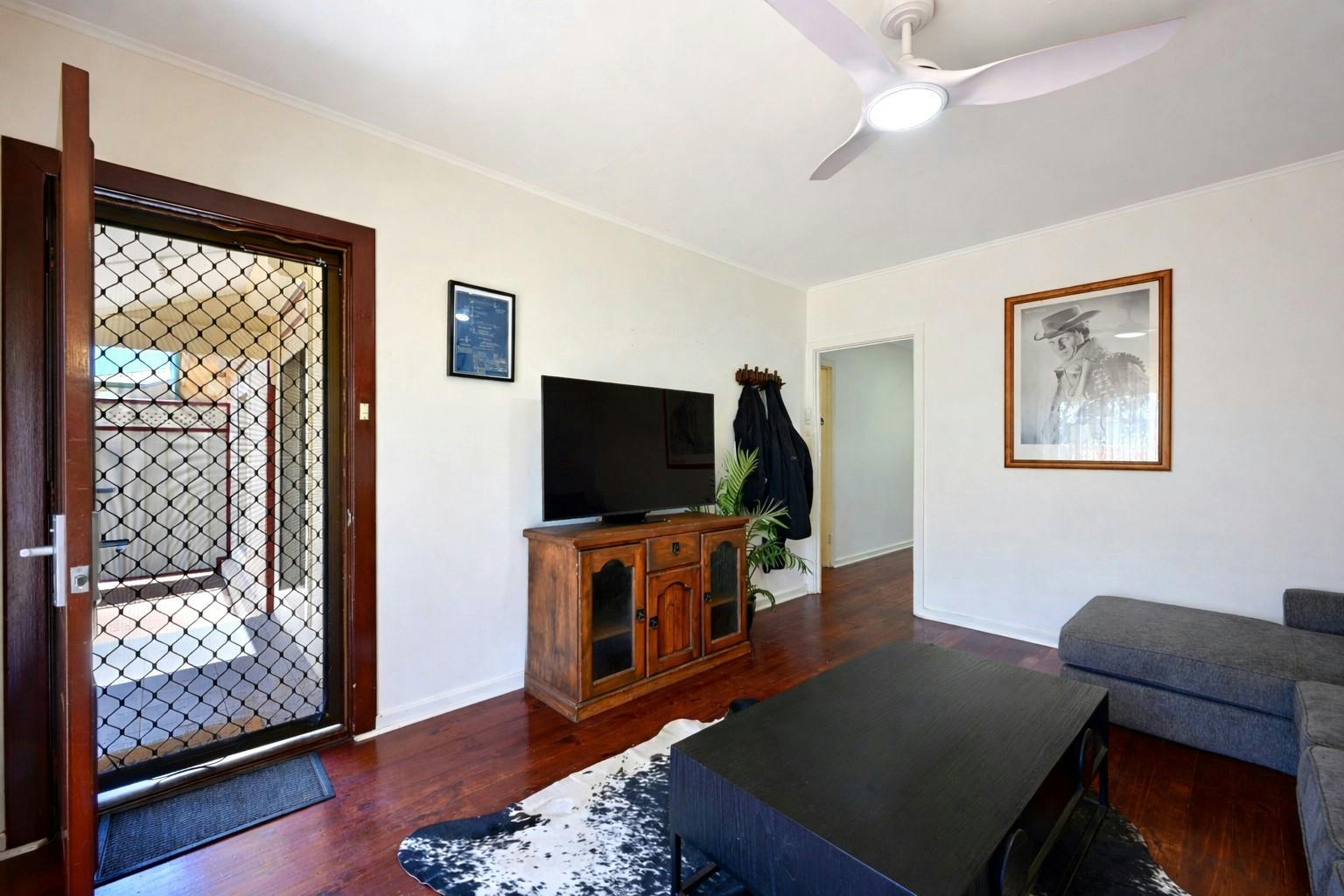 Three bedrooms, including one with built-in robe and another with ceiling fan