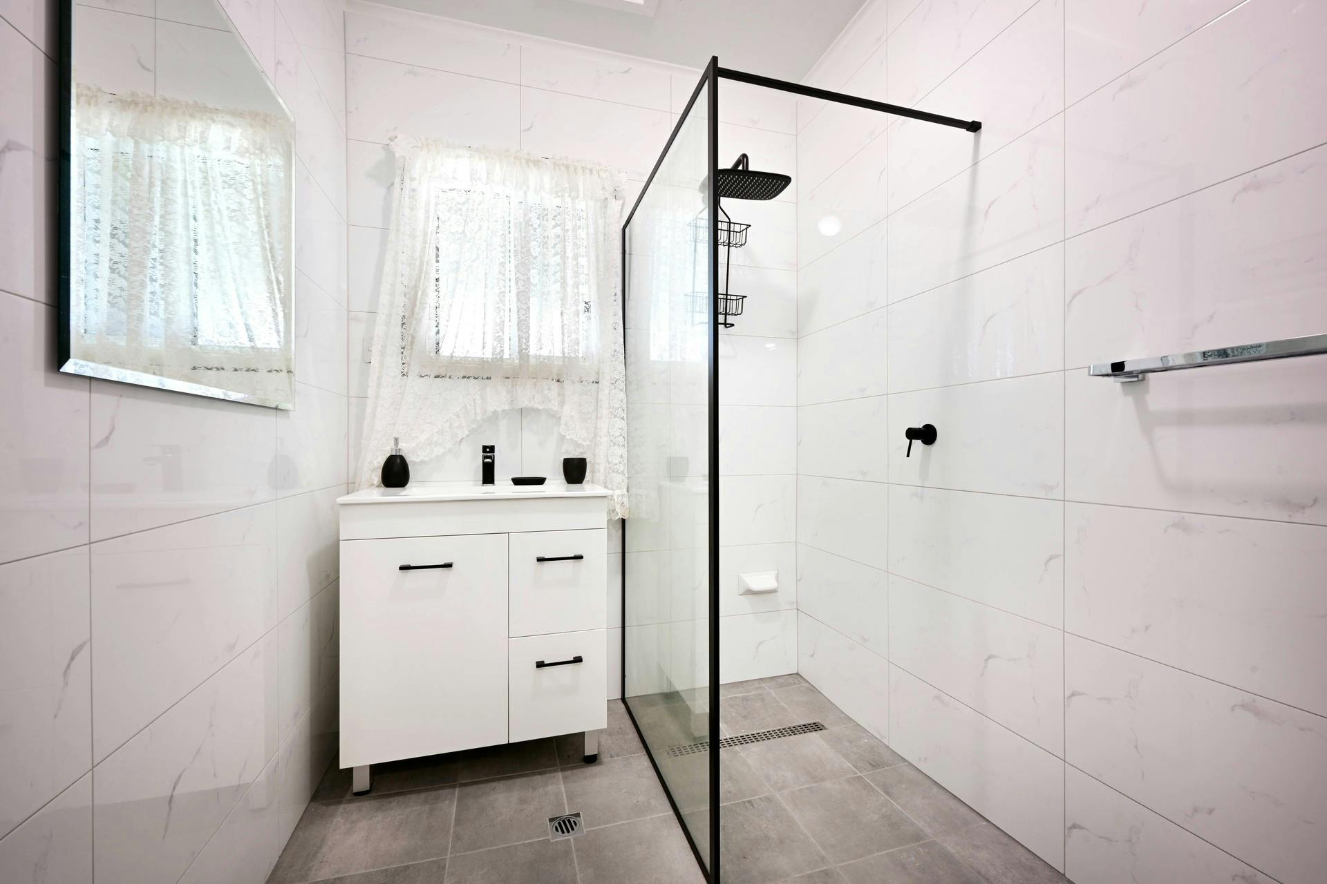 Stylish, upgraded bathroom with walk-in shower
