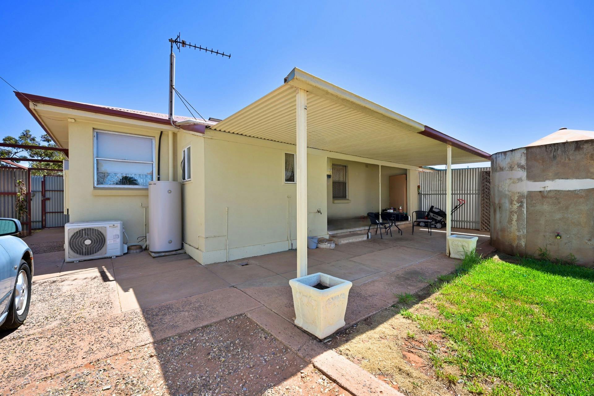 Double gate access to the side of the property with carport for secure off-street parking