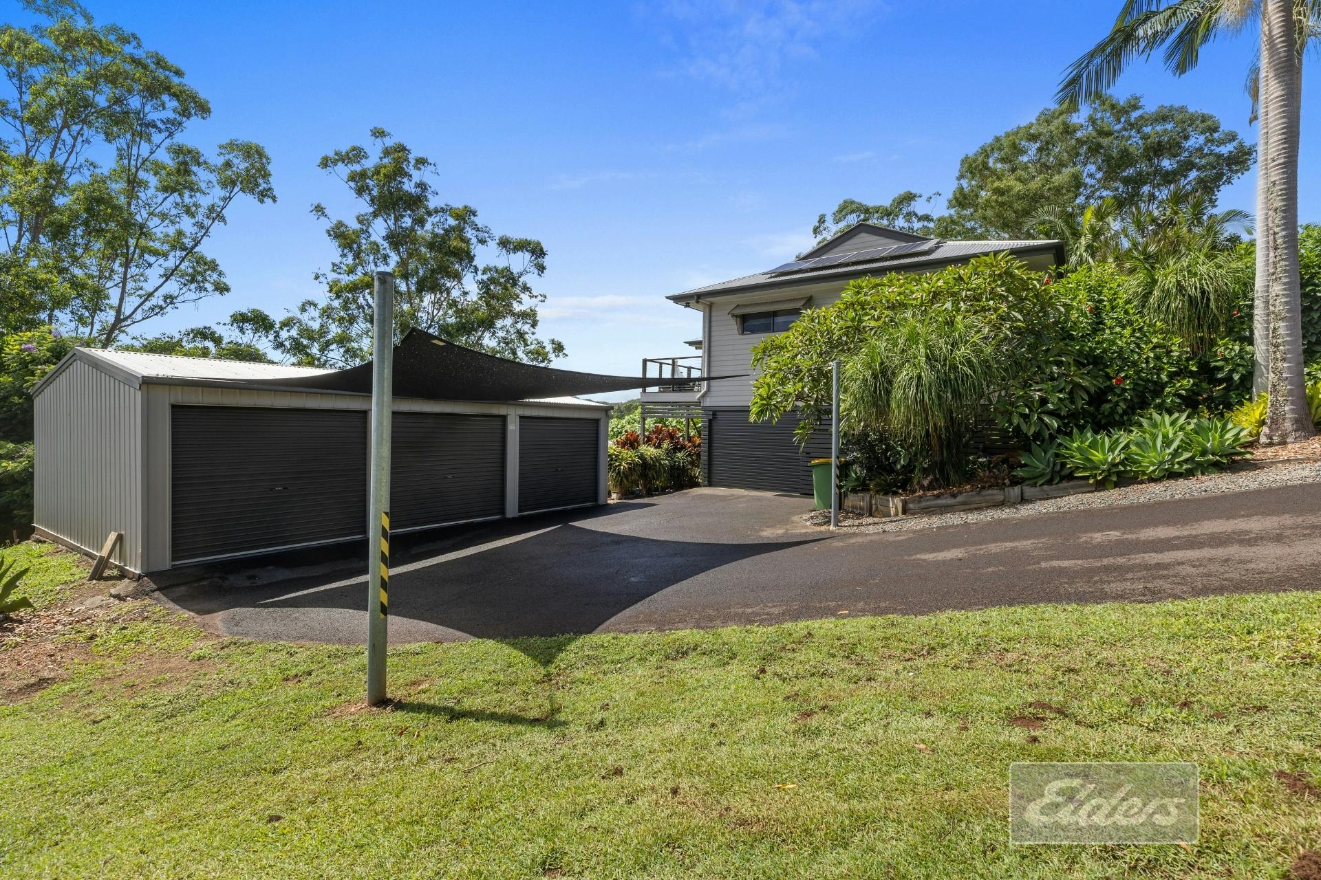 * 9x6m powered shed with triple roller doors and shade sail
