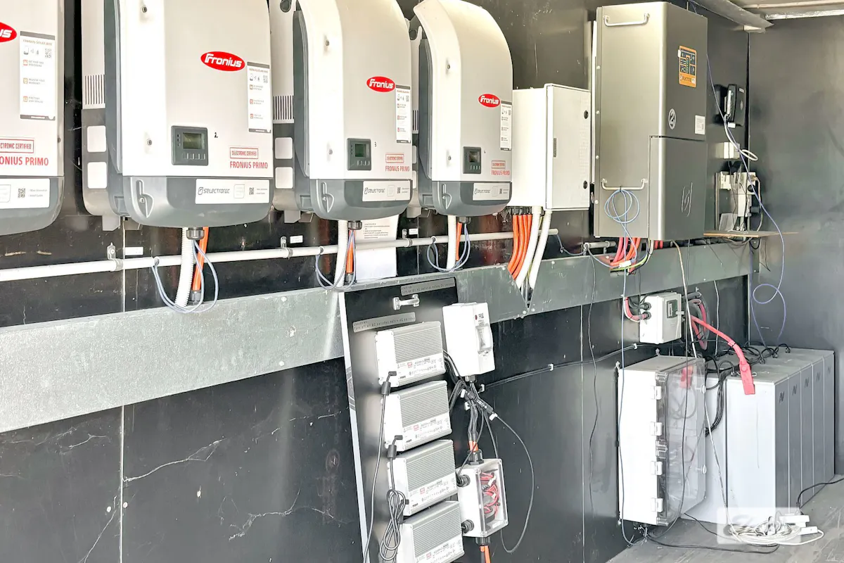 Power supply is completely off grid- Installed is a 40 kW Solar system with a bank of Supercapacitors (Batteries) backed up by a 26 kVA Hatz (diesel) Generator with a Stanford alternator. A 150 Amp charger system was installed in 2024 inside the Control Room for added security. This unit can be operated with a 6.5 (min.) kVA mobile generator as a backup to the main Hatz Generator. A complete fail-safe operation for peace of mind.