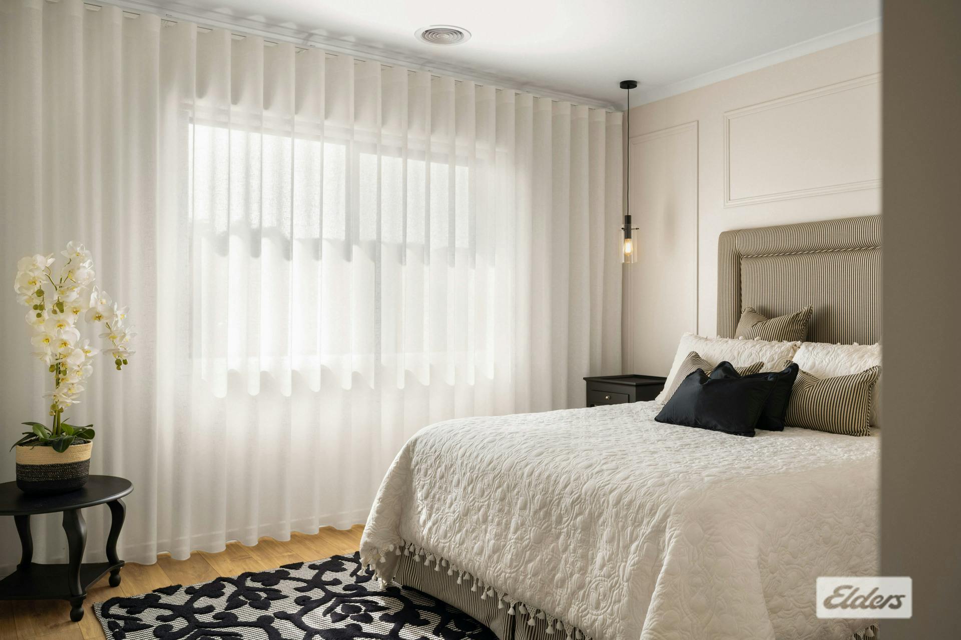 Privately positioned at the rear, the master suite is a true retreat, complete with a generous walk-in robe and ensuite. Three additional bedrooms all include built-in robes and are serviced by a full family bathroom with a separate toilet. The laundry is well appointed with cabinetry and shelving.