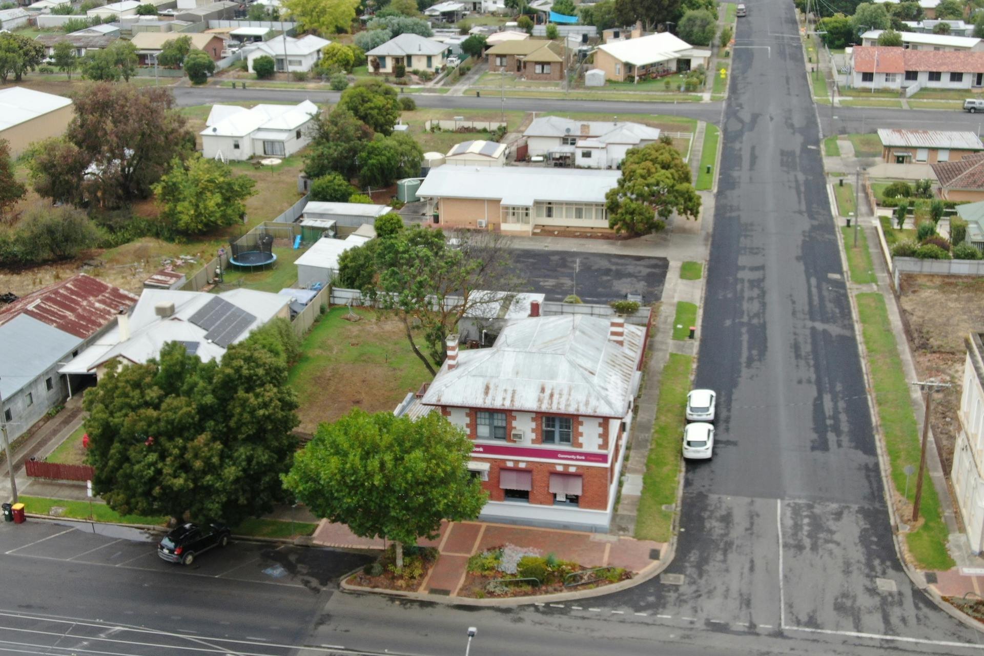 Typical of a modern bank downstairs has an air conditioned service area, offices, tea room, and staff bathroom.