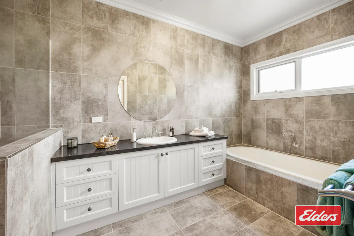 Stunning bathroom, including stone benchtops, walk-in shower, bath & separate toilet