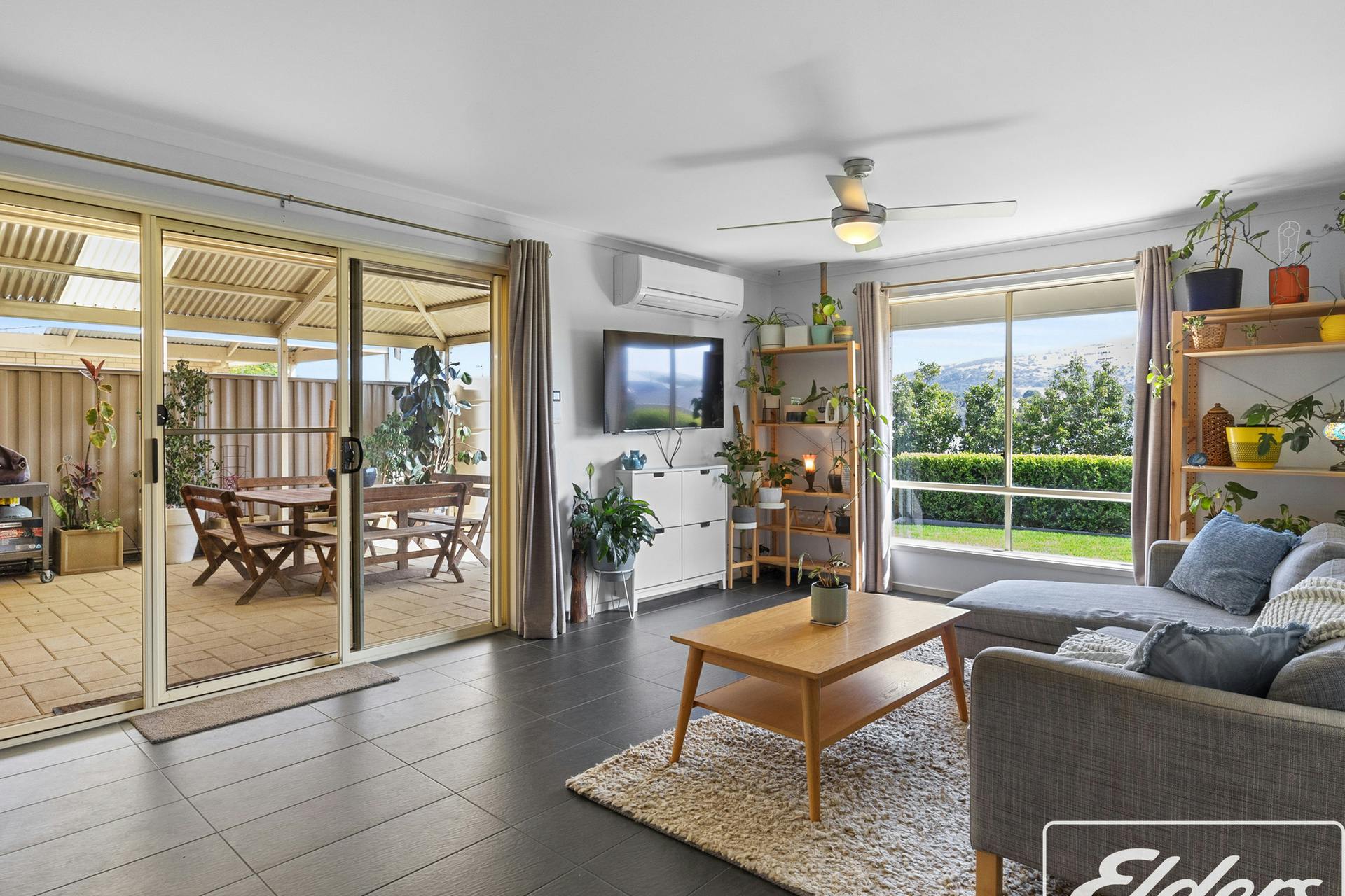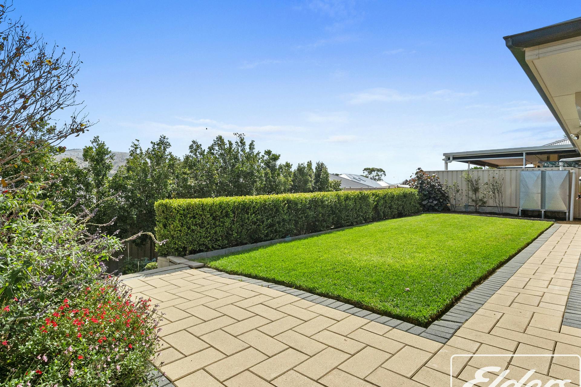 Large patio doors open to a huge Colourbond entertaining Verandah with high gabled roofline and paved flooring. Fitted downlights for evening entertaining. Enjoy the breathtaking views to the hills. The perfect setting for gatherings with family and friends. Bordering this space is your back garden - all beautifully established with privacy hedging and lush lawn plus multiple raised vegetable garden beds for your own homegrown produce.