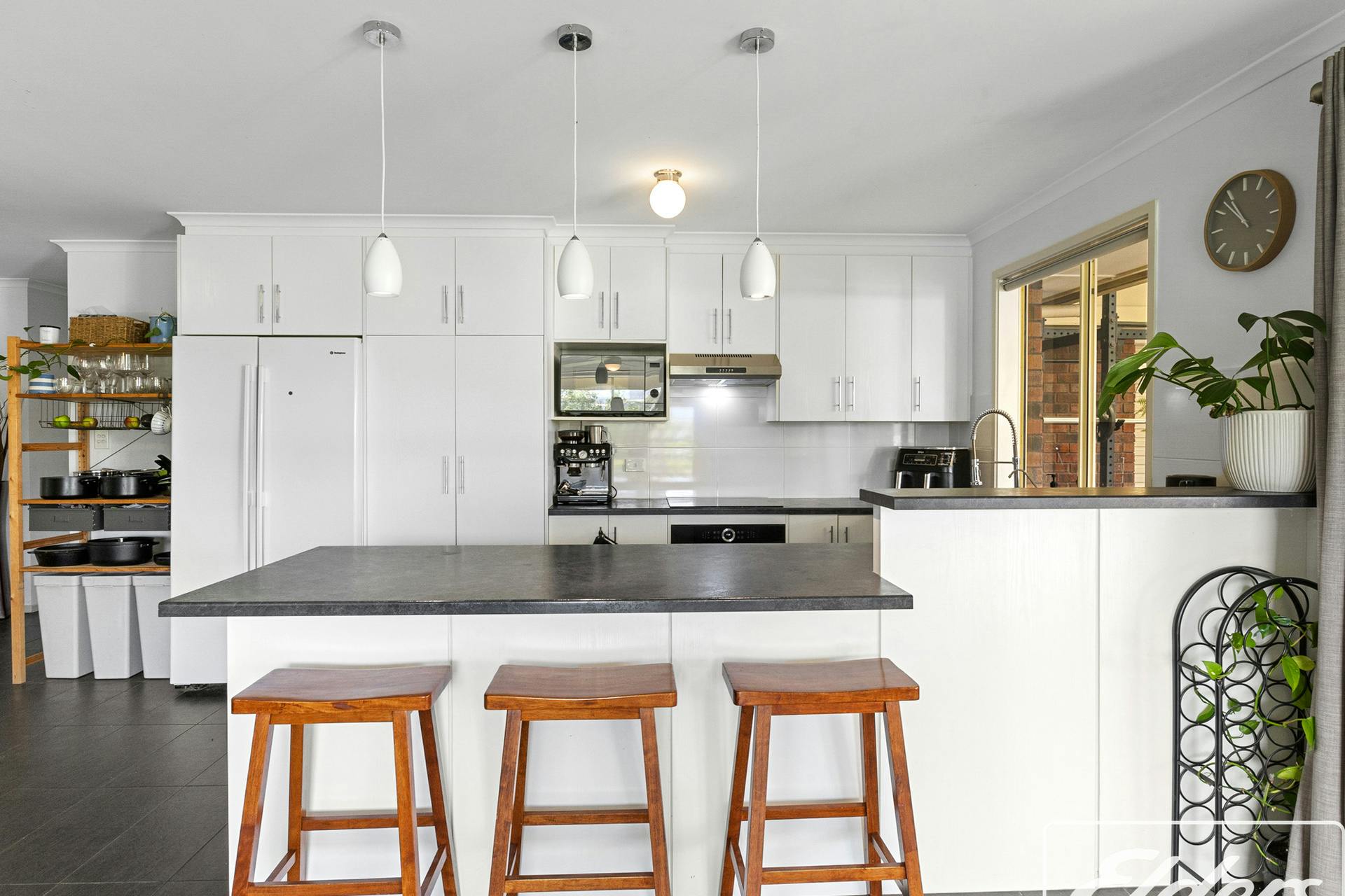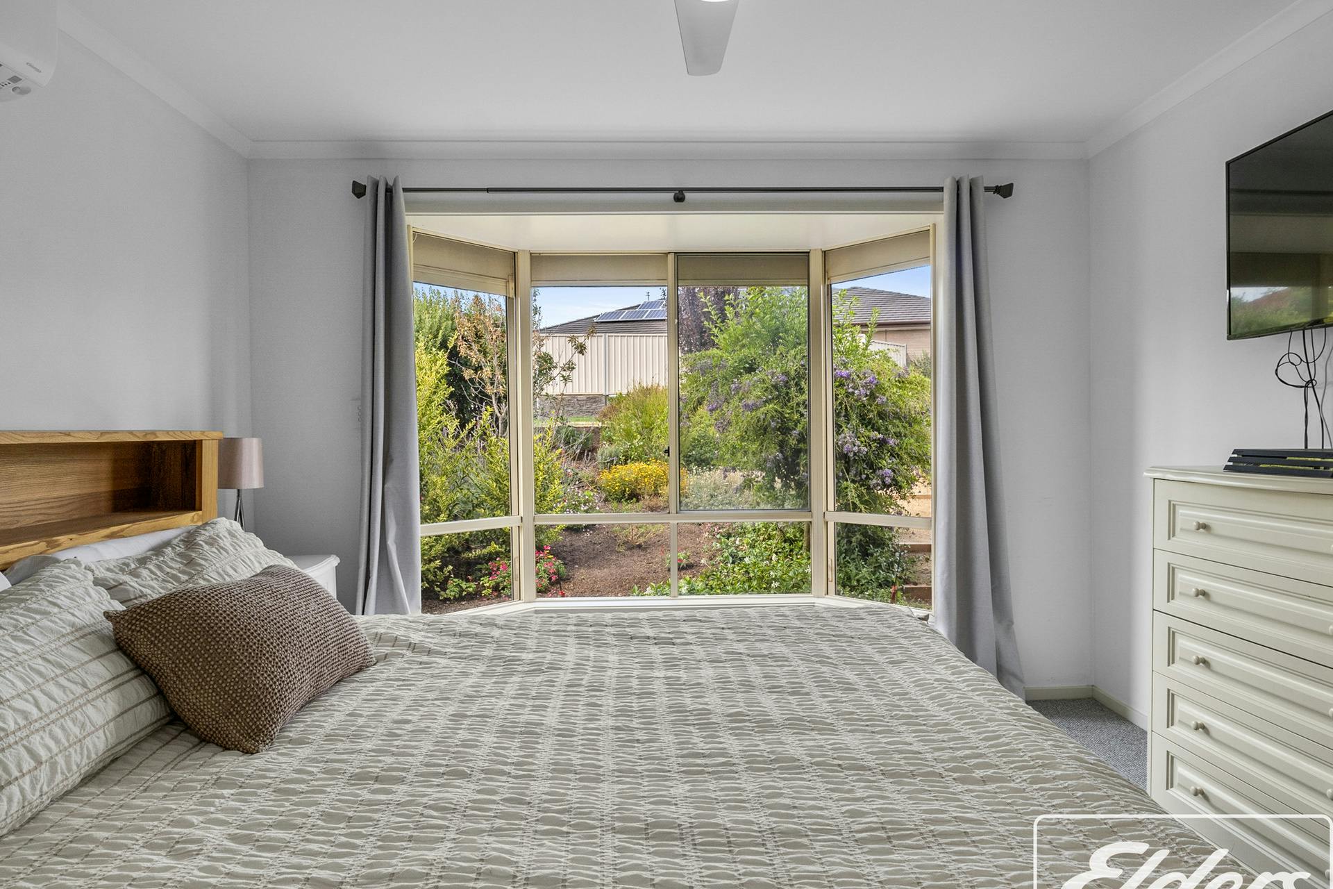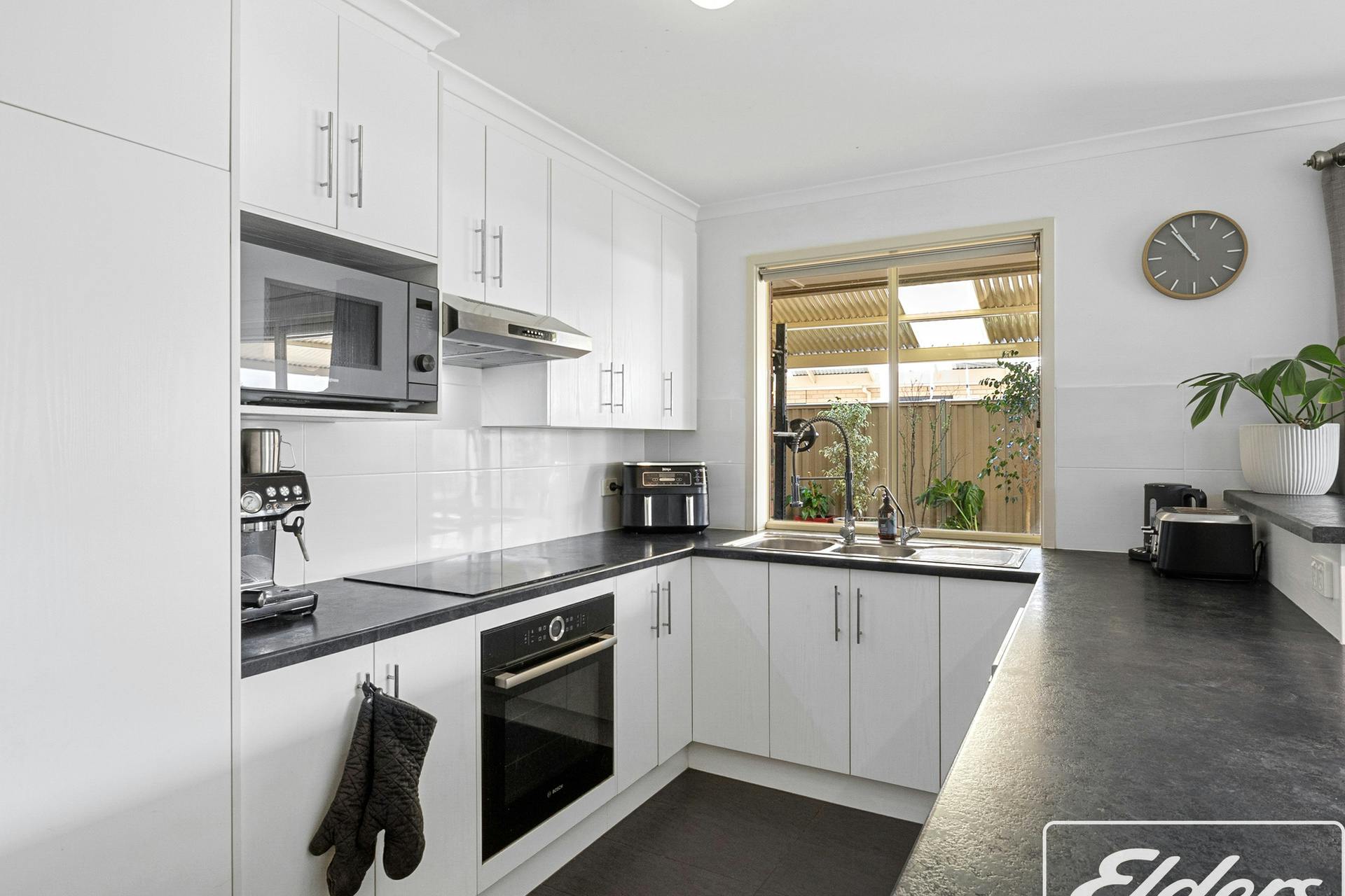 Stepping from the central hall via a privacy door, you enter the true heart of this home – a brilliant family space. Zoned to accommodate informal living, dining and kitchen. Filled with natural light and enjoying delightful views to the hills behind Victor. A well-appointed kitchen includes a near-new Bosch electric oven, induction cooktop, near-new LG dishwasher, and large fridge storage space. Plenty of storage with white cabinets both overhead and under the wide central island bench.