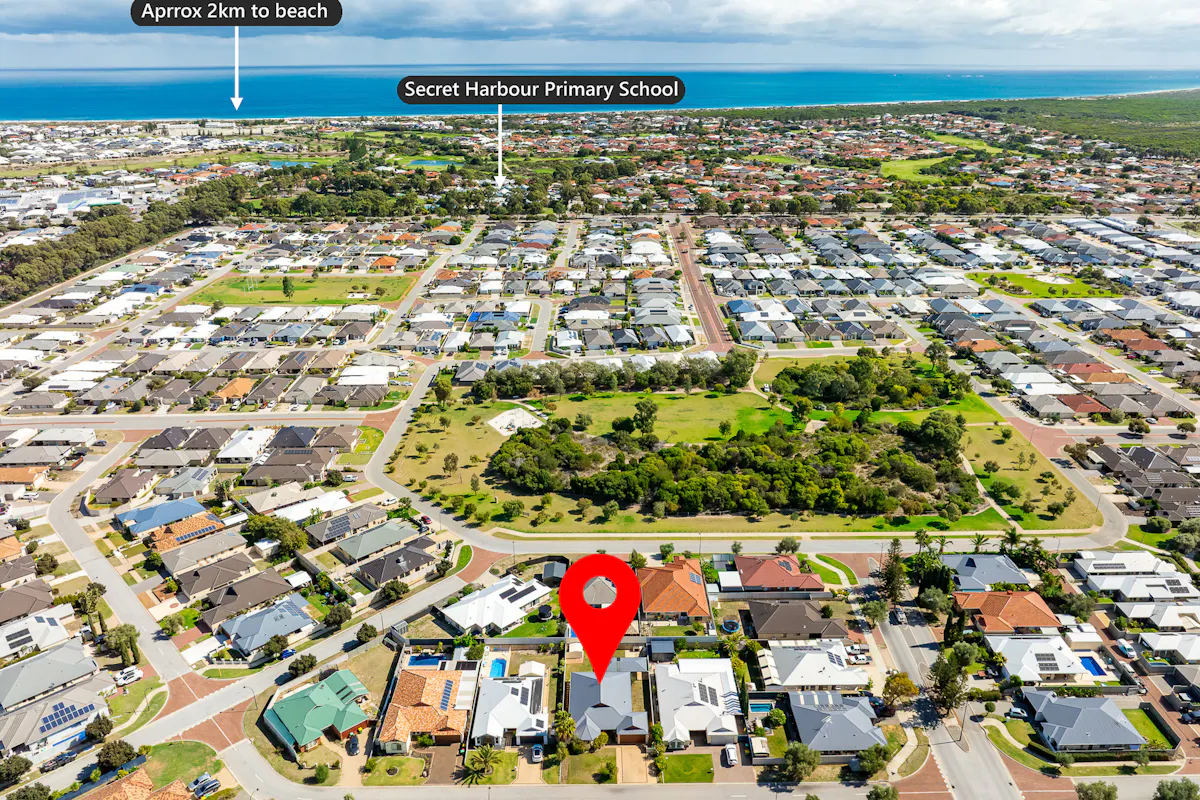 Perfectly positioned only seconds from the fantastic Lennox Reserve, you have a large green area to explore and play equipment to enjoy, while a variety of parks extend throughout the neighbourhood for a family orientated feel. Both primary and secondary schooling is easily within walking distance, with a choice of childcare options close at hand, while the fully stocked Secret Harbour shopping centre is conveniently close by to meet all your retail and dining needs. Road, rail and bus connections provide a straightforward commute if required, while your recreational options include not only the pristine beaches and surf breaks beyond, but also the world class golf course that meanders its way throughout the suburb for a popular choice for many.