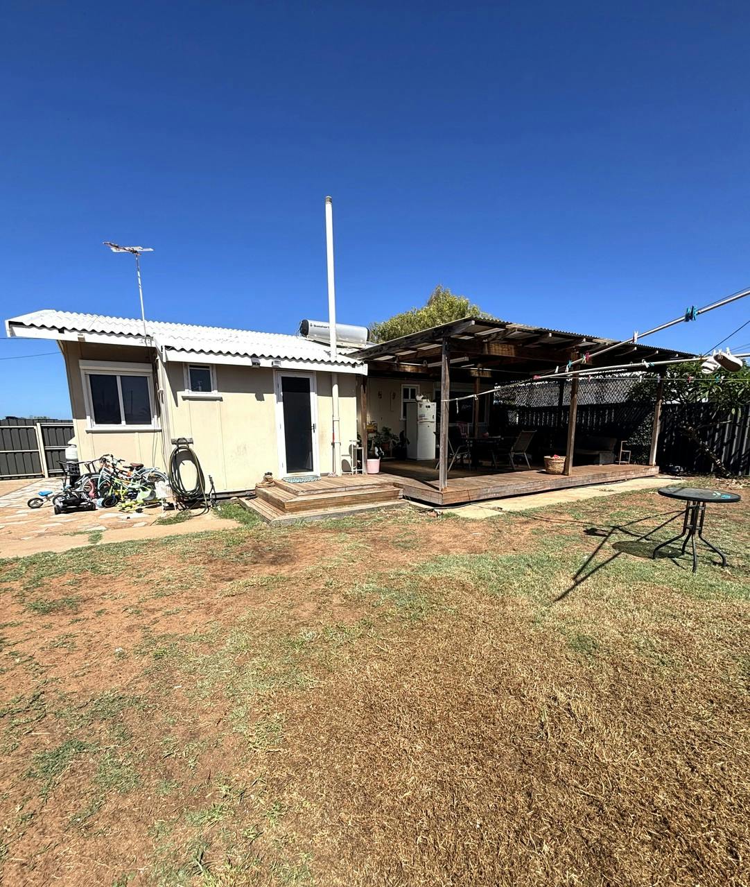 Three-bedroom, one bathroom fully fenced fibro home located in SouthCarnarvon. Located on the high end of Hubble Street with close vicinity to the