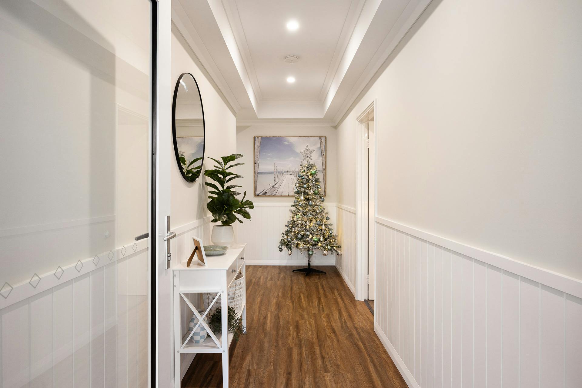 - Grand entry hallway with a recessed ceiling for added height and wainscotting to the walls