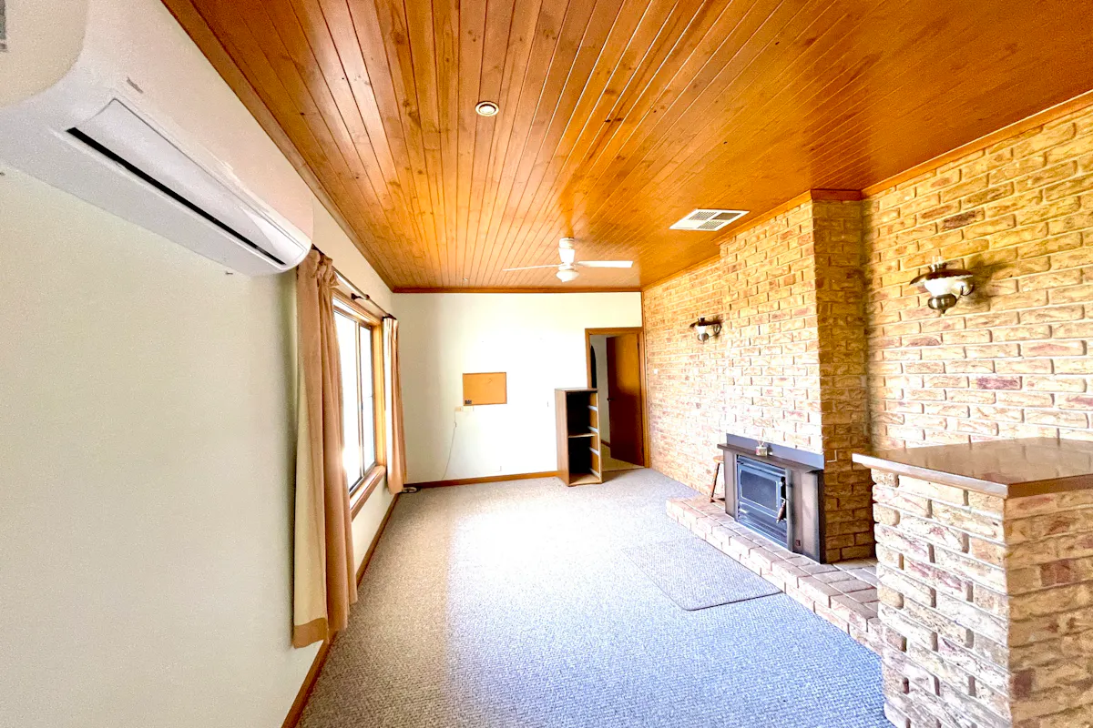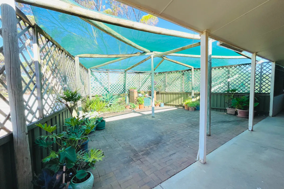 At the front of the home is a 3.5m x 5m wooden entertainment deck taking in the views over the land, also as a front wrap around enclosed verandah with a metre high wall and flywire to roof, this leads to the side pergola area with enclosed with lattice and shade cloth.