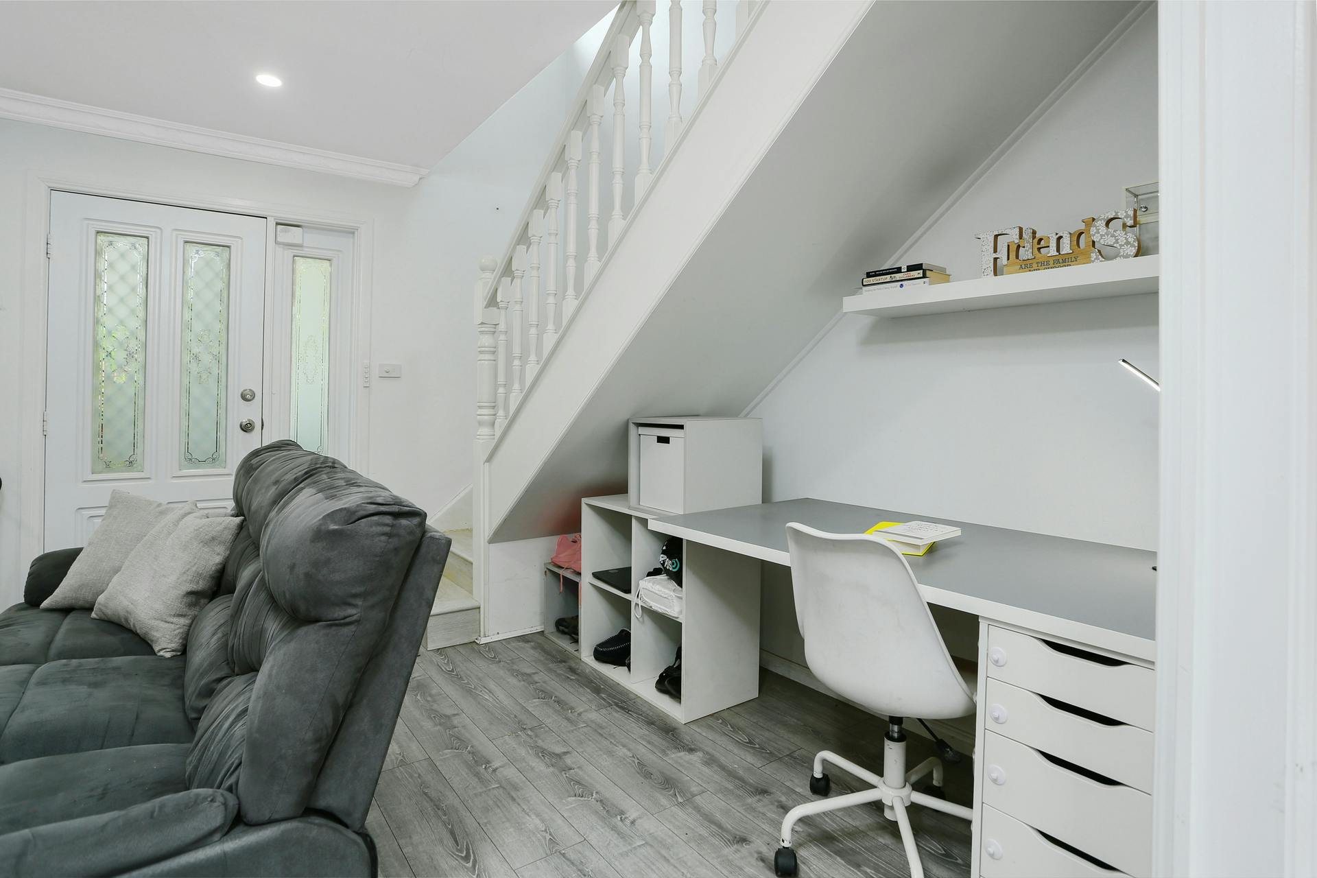 + Open plan dining, timber flooring, study area upstairs.