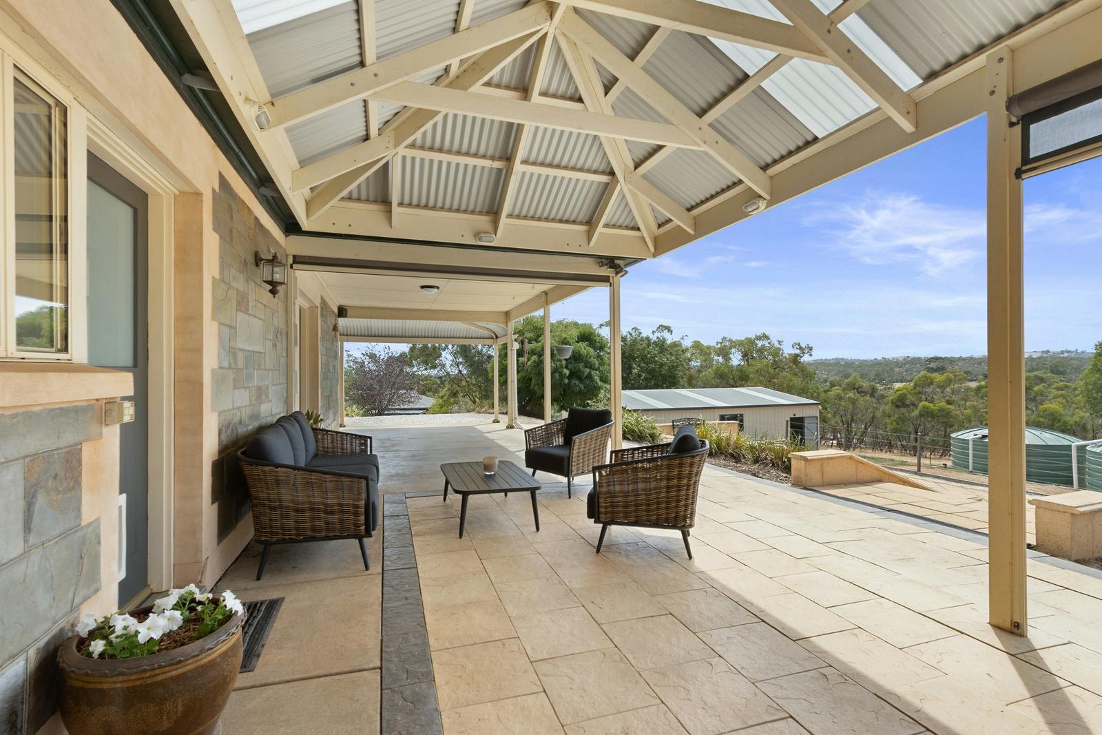 Ideally positioned and thoughtfully sheltered from the elements, the home is nestled among established trees and landscaped gardens. Its elevated aspect captures magnificent views across the Clare Valley, all while being just a short walk from the main street.