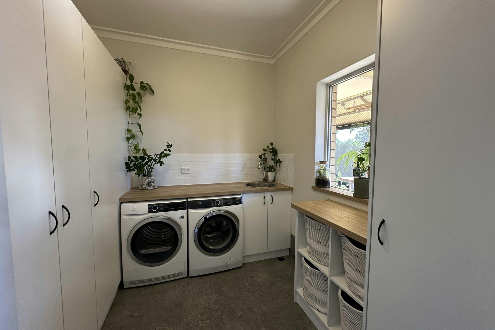 A standout feature of this home is the recently renovated laundry, thoughtfully designed with extensive built-in cabinetry, multiple linen cupboards, and space for an additional fridge or freezer.