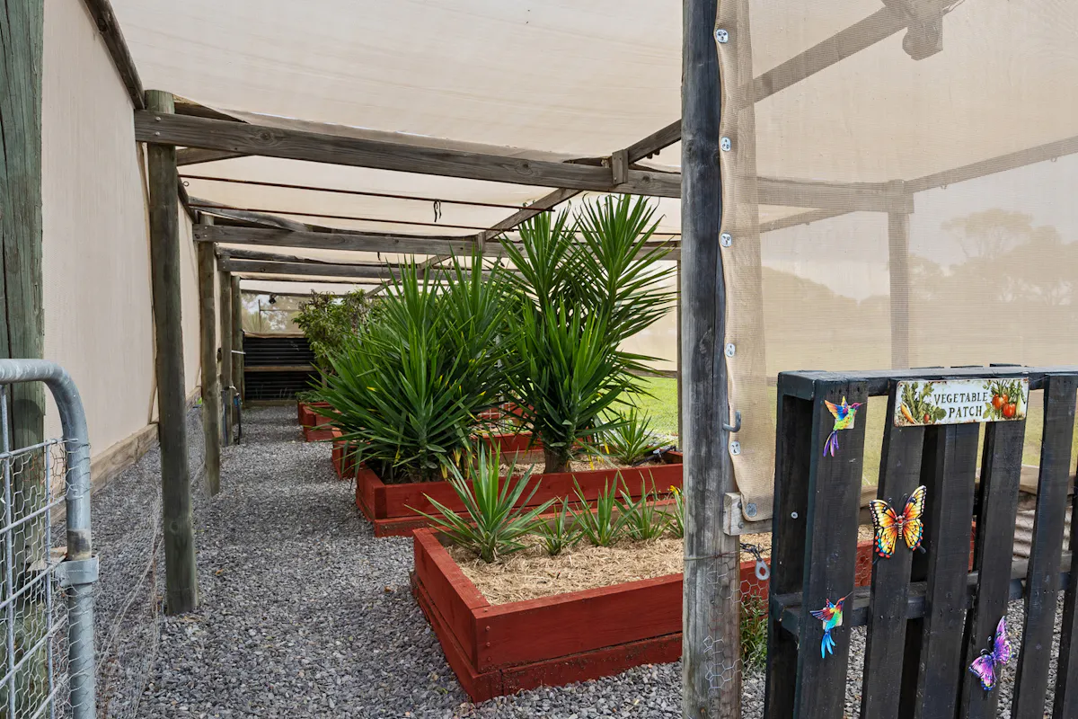 An undercover fruit and vegetable garden provides a productive and sheltered space for home grown produce, adding to the property's self sufficient lifestyle appeal.