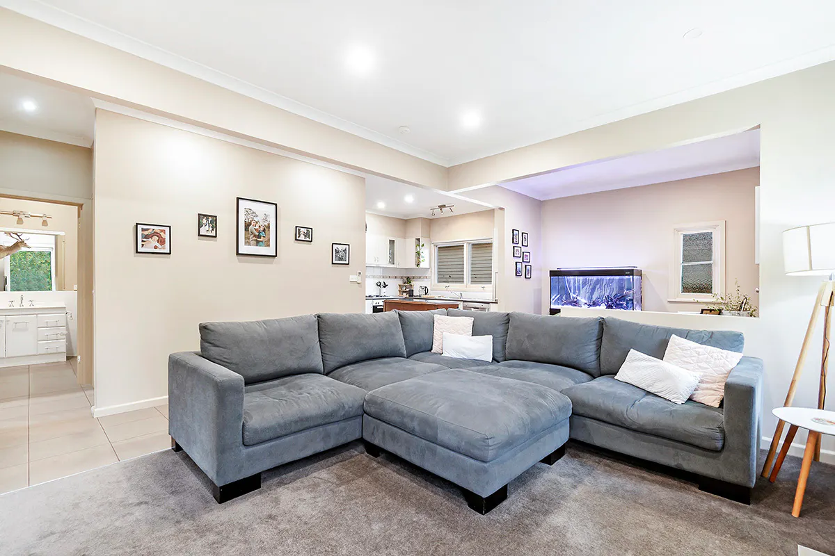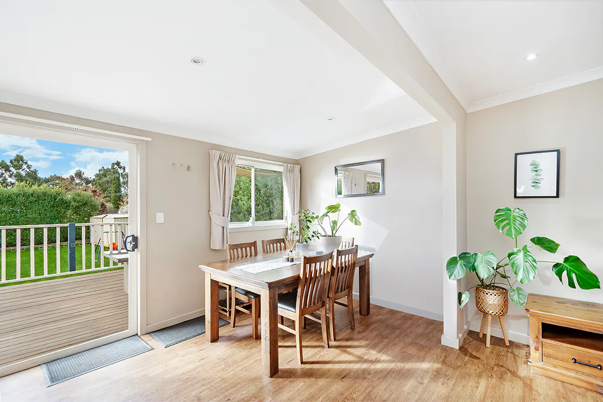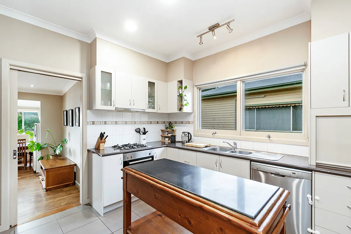 A step down off the kitchen you'll find a separate living area that is a great spot for the dining table, over looking the back yard, a study nook, storage, European style laundry and second toilet.