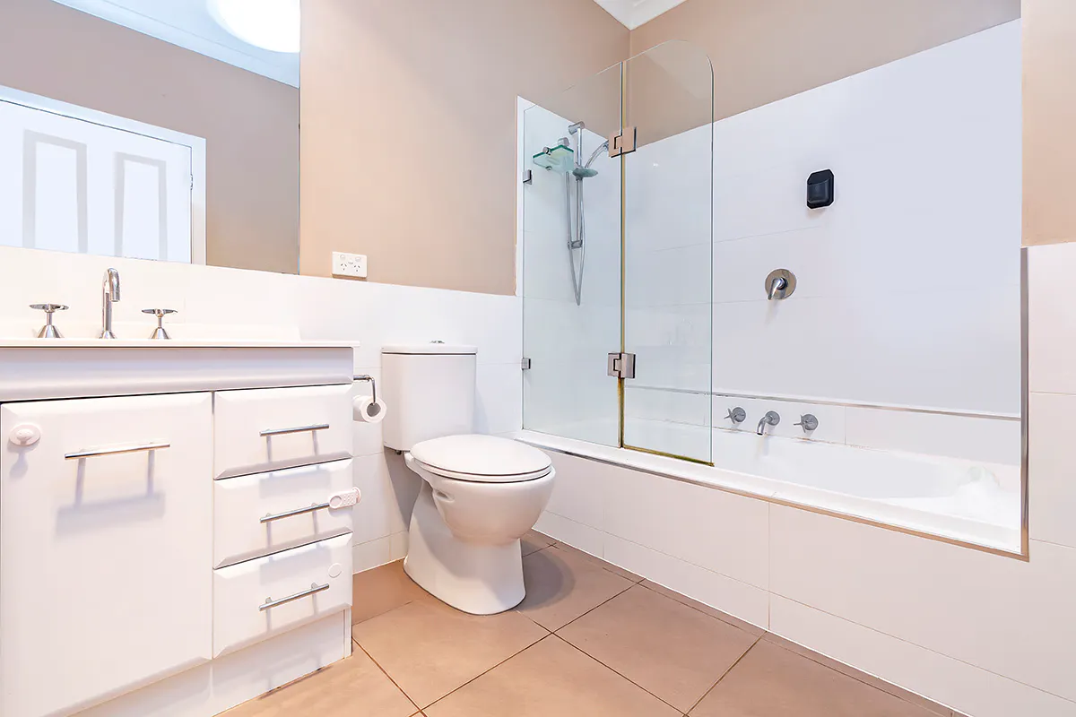 • One bathroom with shower, vanity and toilet