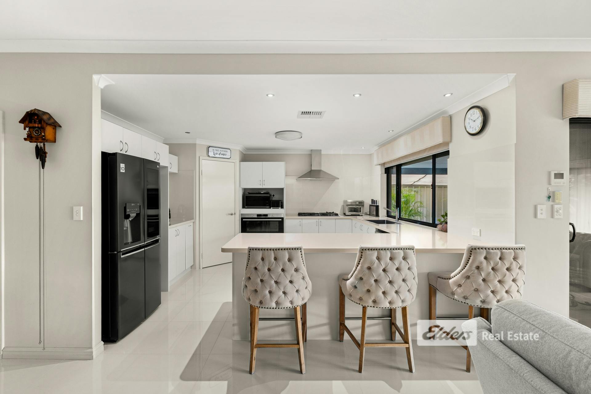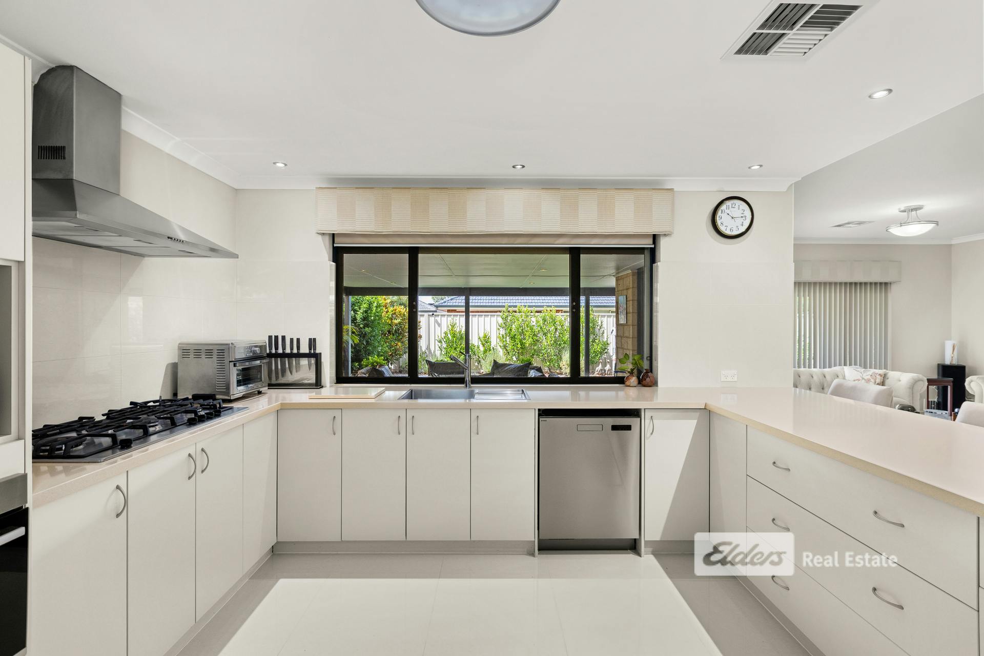 At the heart of the home is an elegant kitchen, thoughtfully designed with large drawers, endless cupboard space and a commanding five-burner gas cooktop. Overlooking the open-plan living, dining area and patio, it's a space made for everyday living and hosting with ease.
